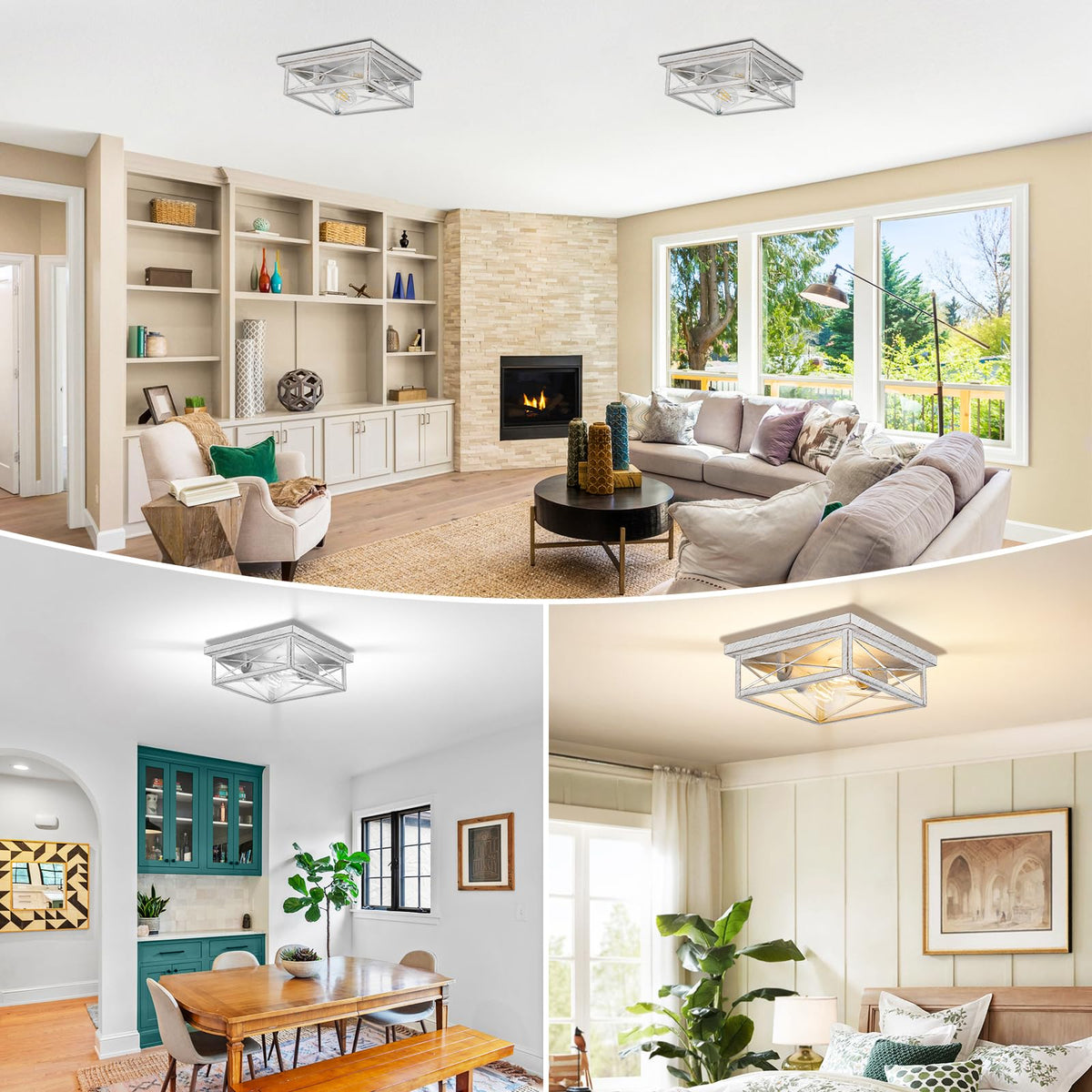 What Surprise Our White&Nbsp;Flush Mount Ceiling Lights Bring To You? E26 Ceramics Lamp Holder The Farmhouse Light Fixtures Ceiling&Nbsp;Works Well With Any E26 Base Bulbs(Bulb Not&Nbsp;Included). Compare With Other Plastic Socket, Our Ceramic Texture Lamp Holder Has Superior Heat Dissipation Than Others.&Nbsp; Unique 2-Light Design Our Ul Certified Industrial Flush Mount Ceiling Light&Nbsp;Features A 2-Light Design, Which Provides Double Illumination Power. Each Lamp Holder Can Be Independently Adjusted, Allowing You To Customize The Light Direction And Coverage According To Your Preference. Anti-Rust Square Light The Modern 2-Light Ceiling Light Fixture&Nbsp;Is Made Of High-Quality Metal, High Strength Welding, Baking Paint. It Is Long Lifespan And Helps You Save Time &Amp; Money In Replacing The Lamp. The Special Square&Nbsp;Shield Frame&Nbsp;With Unique ''X'' Shape Line Design, Built Its Stylish Modern Look. It&Nbsp;Will Well Match With All Kinds&Nbsp;Off&Nbsp;Styles And Also Can Be A Eye-Catching Decor Ceiling&Nbsp;Light Among Your Space!&Nbsp; Product Specifications: Voltage: 120V Ac Wattage: 100W Max Base Type: E26 Material: Metal Color: Antique White Warm Tips: 1.&Nbsp;Please Make Sure You Have Cut Off The Electricity Supply Before Installation. 2.&Nbsp;For The Longer Service Life, Please Use It In Indoor Dry Environment. 3.&Nbsp;Bulb Is Not Included In The Package.(100W Max). Fqa 1.&Nbsp;Is The Brightness Of The Ceiling Light Fixture Adjustable? A: Yes, The Hallway Lights Ceiling Mount&Nbsp;Is Dimmable When Apply Dimmer Switch And Dimmable Bulbs, Allowing You To Customize The Lighting Intensity According To Your Preference. 2.&Nbsp;What Are The Dimensions&Nbsp;Bronze Ceiling Light? A: Our&Nbsp;Farmhouse&Nbsp;Close To Ceiling Light&Nbsp;Measuring 3.75 Inches In Height And 10.62 Inches In Width.