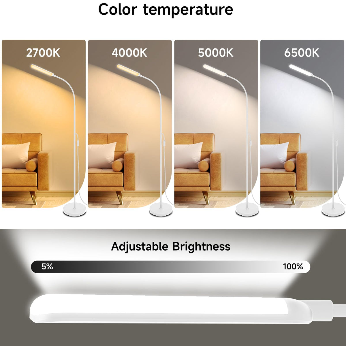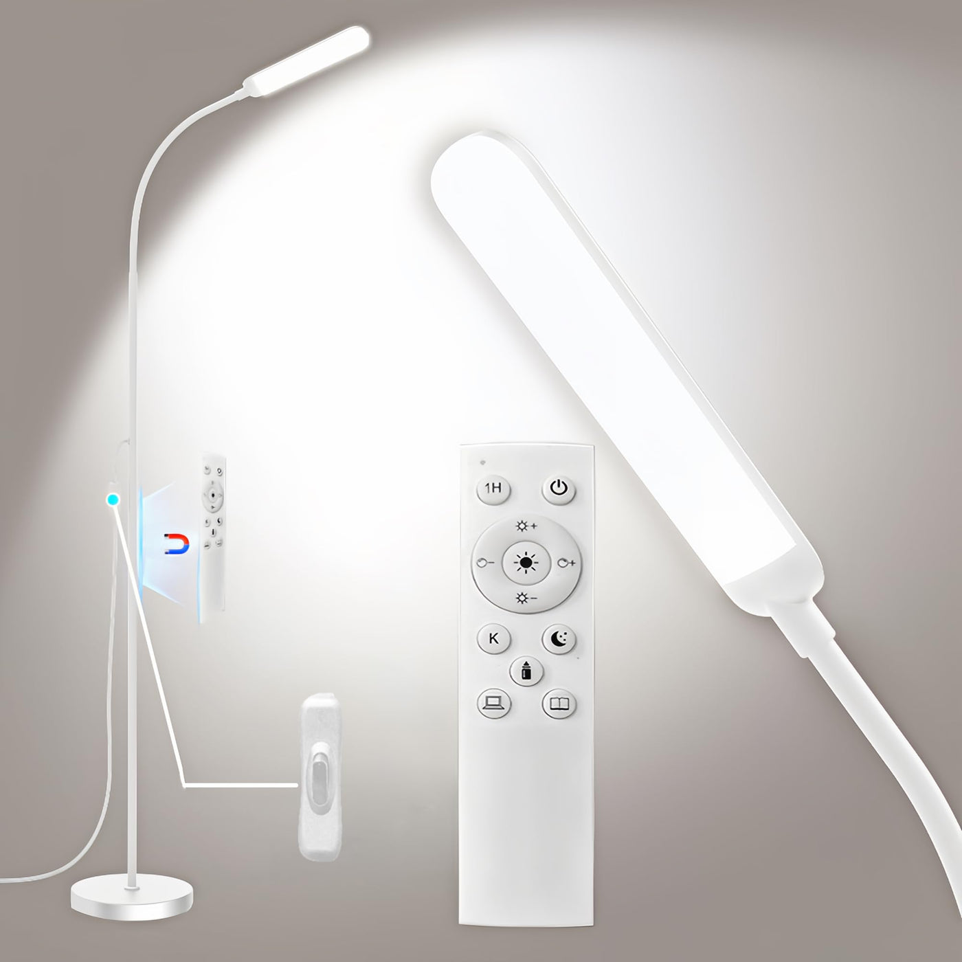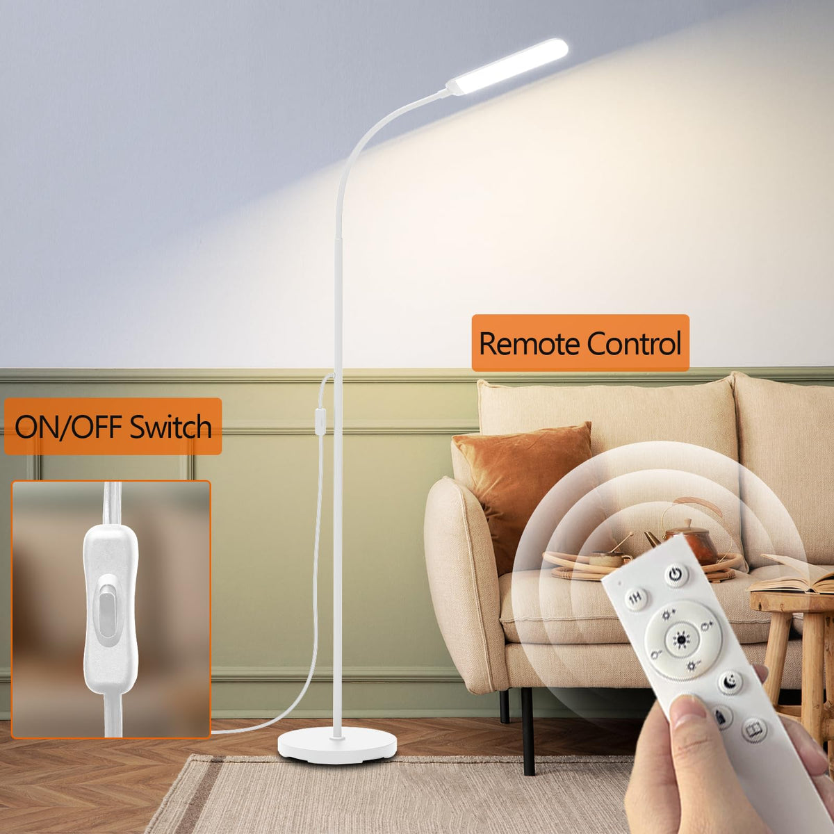 White Led Floor Lamp, 18W 1800Lm Super Bright Dimmable Floor Lamps For Living Room Bedroom With Timer, Stepless Adjustable 2700K