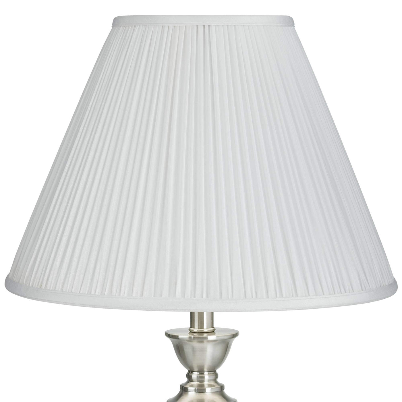 A stately addition to a table lamp or floor lamp, this empire lamp shade hails from the designer Springcrest Collection. Designed with emulation silk fabric, the white mushroom pleats are full of texture and elegance. Complete with a matching white lining and powder coated off-white spider fitter, this timeless design includes the correct size harp and finial.