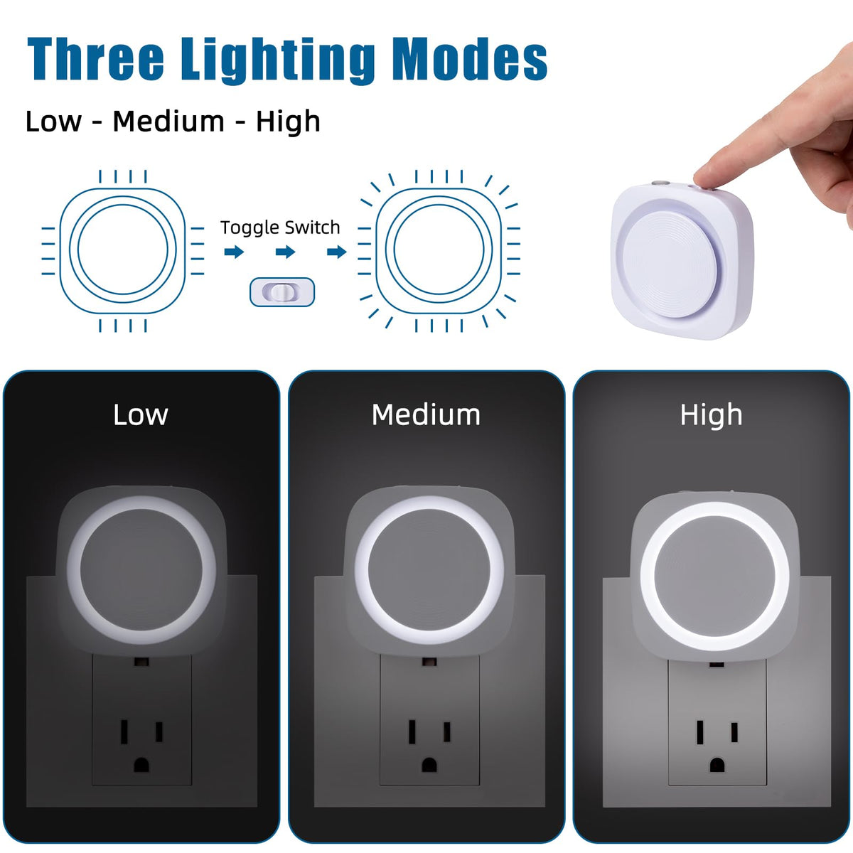Q: How does the automatic sensor work in the night light?A: The night light features a smart sensor that detects the surrounding light levels. It automatically turns on when the environment darkens, providing convenient illumination during late-night trips to the bathroom or hallway.