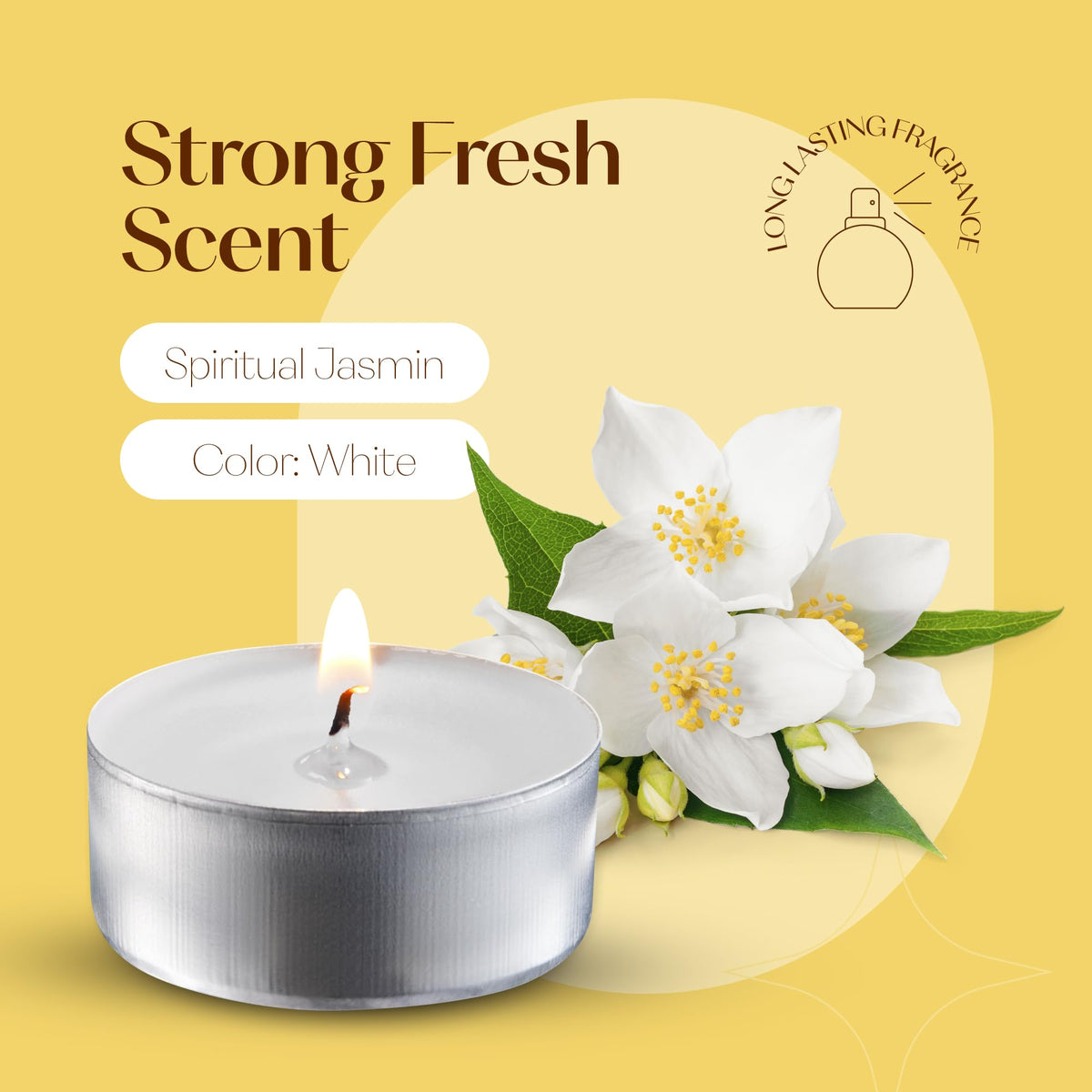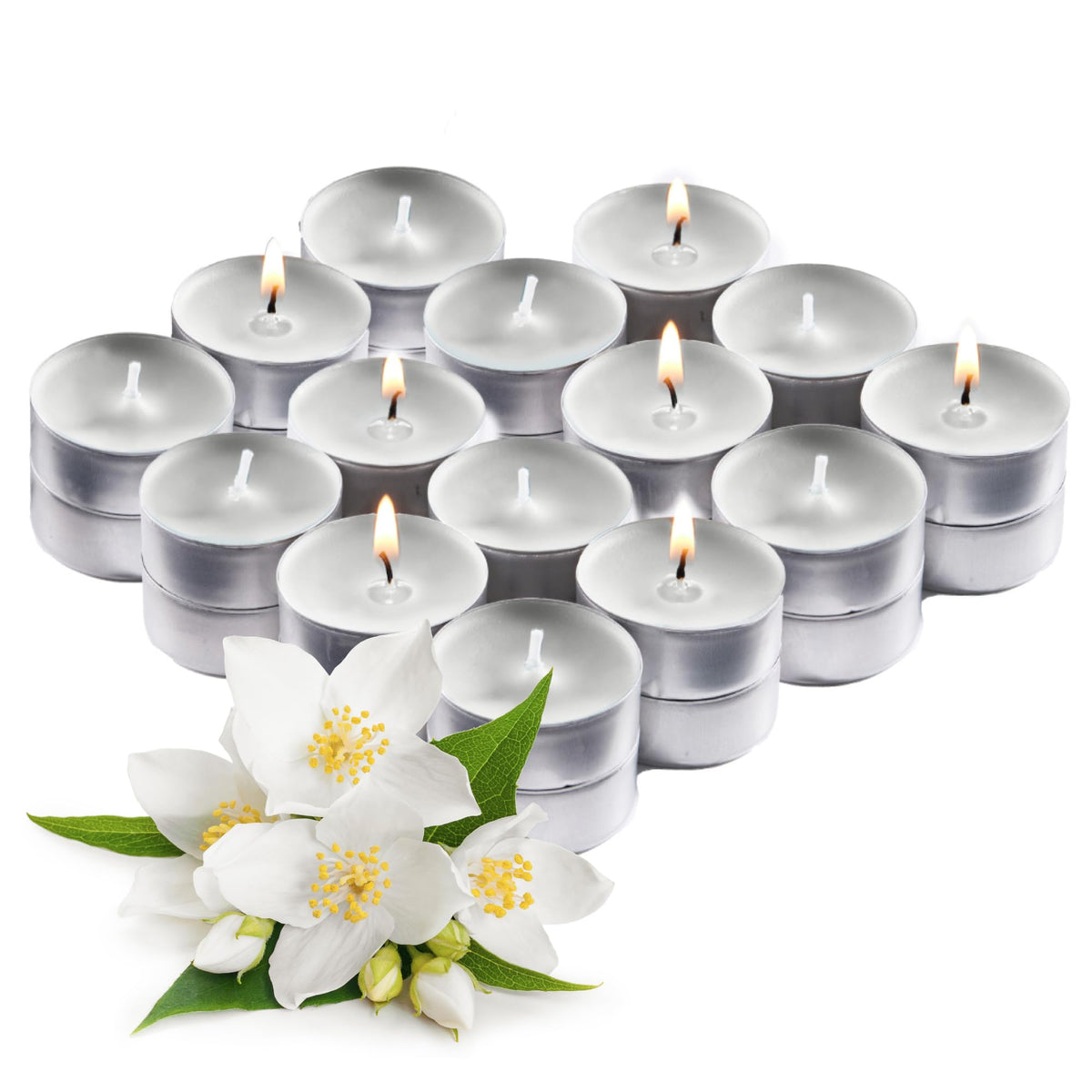 White Scented Tealight Candles - Pack Of 30 White Tea Light Candles - White Tea Lights Candles With Long Lasting Aromas - Spiritual Jasmin Scented Tea Lights Candles - 4 Hour Burn Time