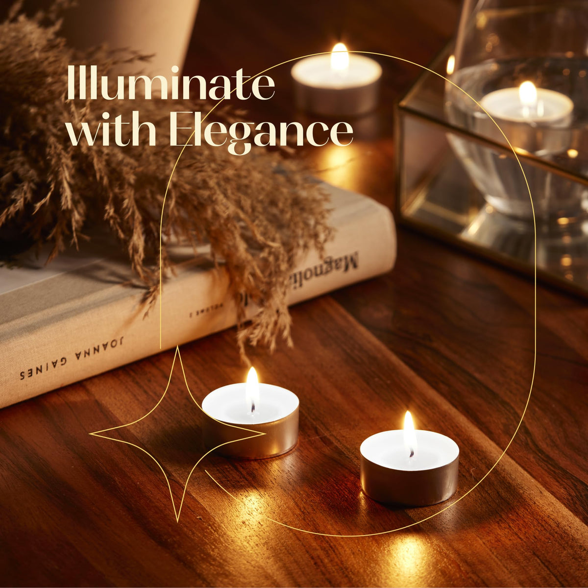 Q: Can I use these tealight candles for outdoor events?A: Yes, the White Scented Tealight Candles can be used for outdoor events, but it is recommended to place them in a sheltered area to protect the flame from wind.