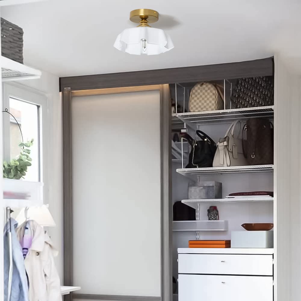 Q: Can this ceiling light be used in small rooms?A: Yes, the Vintage Brass Gold Semi Flush Mount Ceiling Light is designed for small spaces, making it an ideal choice for hallways, closets, kitchens, and entryways. Its soft brightness provides a comfortable atmosphere without overwhelming the room.
