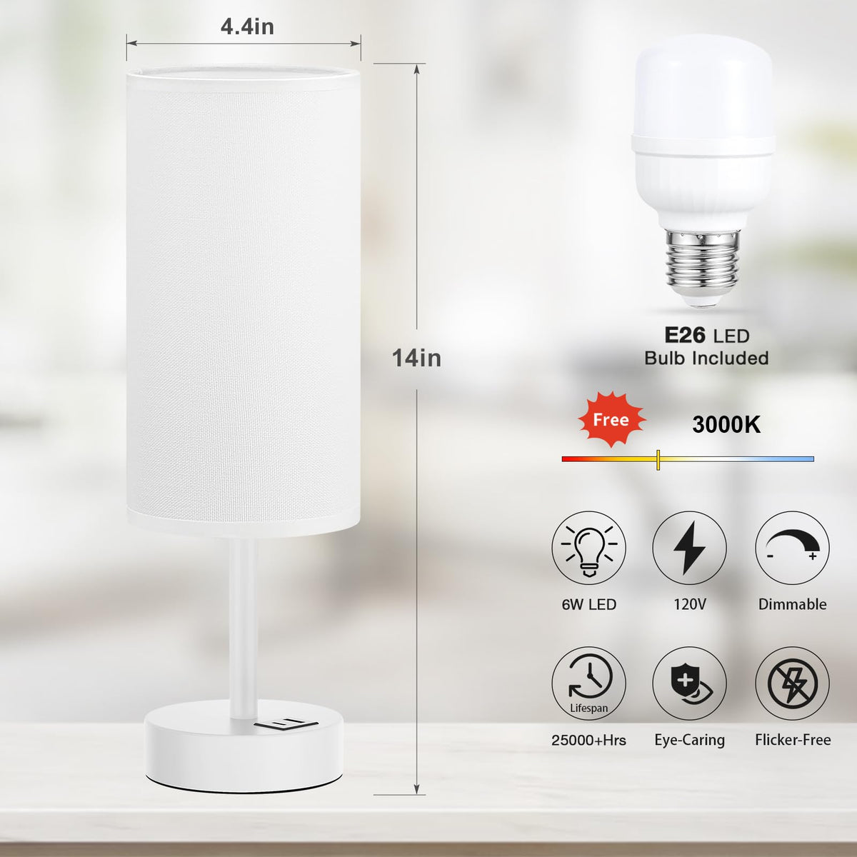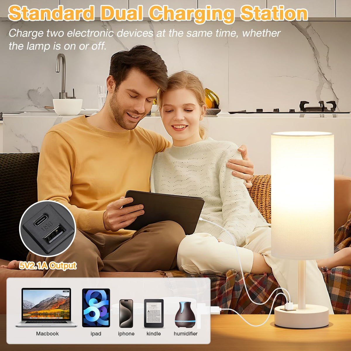 White Touch Bedside Lamp For Bedroom - 3 Way Dimmable Table Lamp With Usb, Nightstand Lamp With White Charging Station For Desk