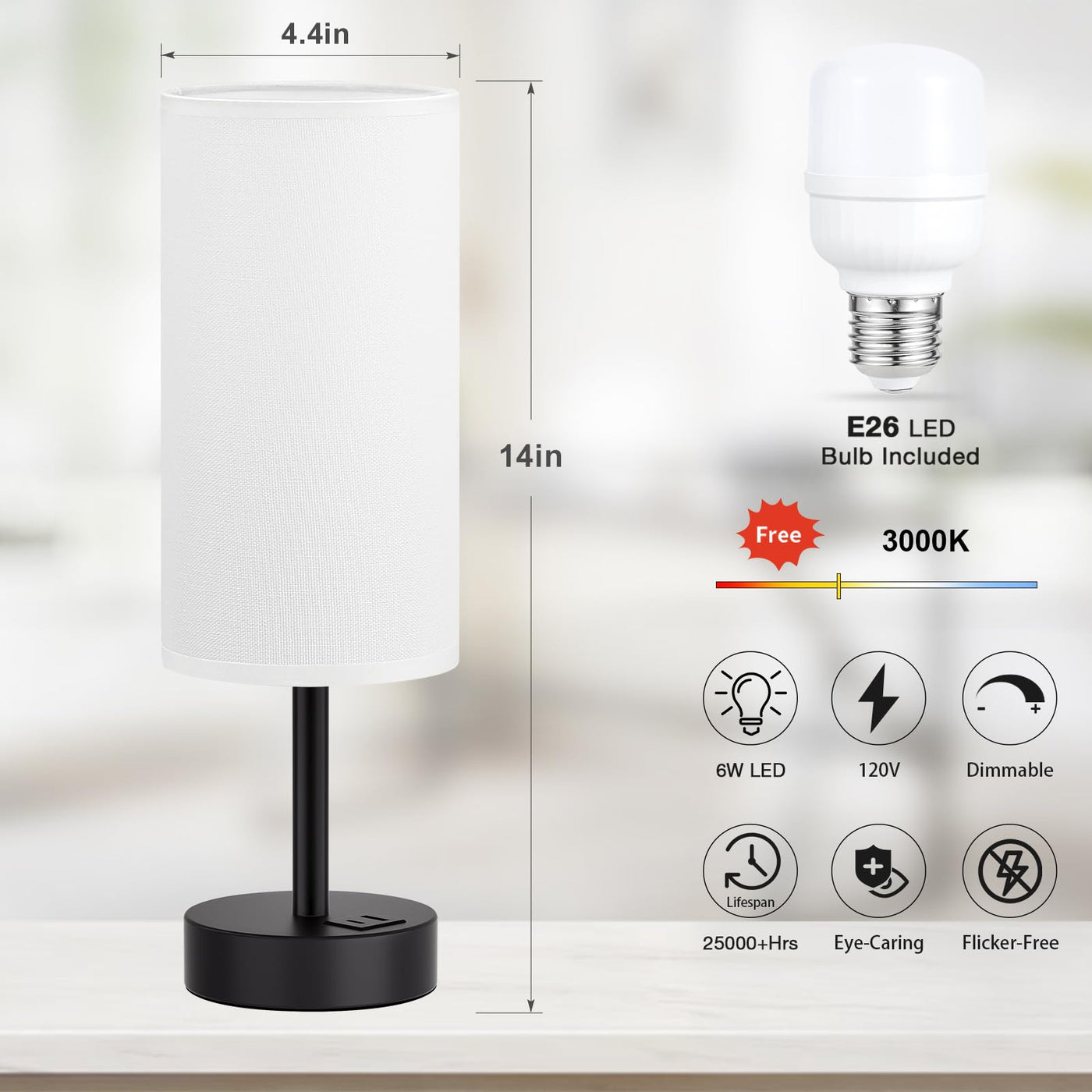 Q: What type of bulb does the lamp use and is it energy-efficient?A: The lamp comes with a 6W LED bulb, which is energy-efficient and designed to last longer than traditional bulbs, helping to reduce energy costs over time.