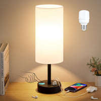 Q: What are the main features of the White Touch Table Lamp?A: The White Touch Table Lamp features touch control for easy operation, a 3-way dimmable function for adjustable brightness, a USB A and Type C charging station for convenient device charging, and includes a 6W energy-efficient LED bulb.