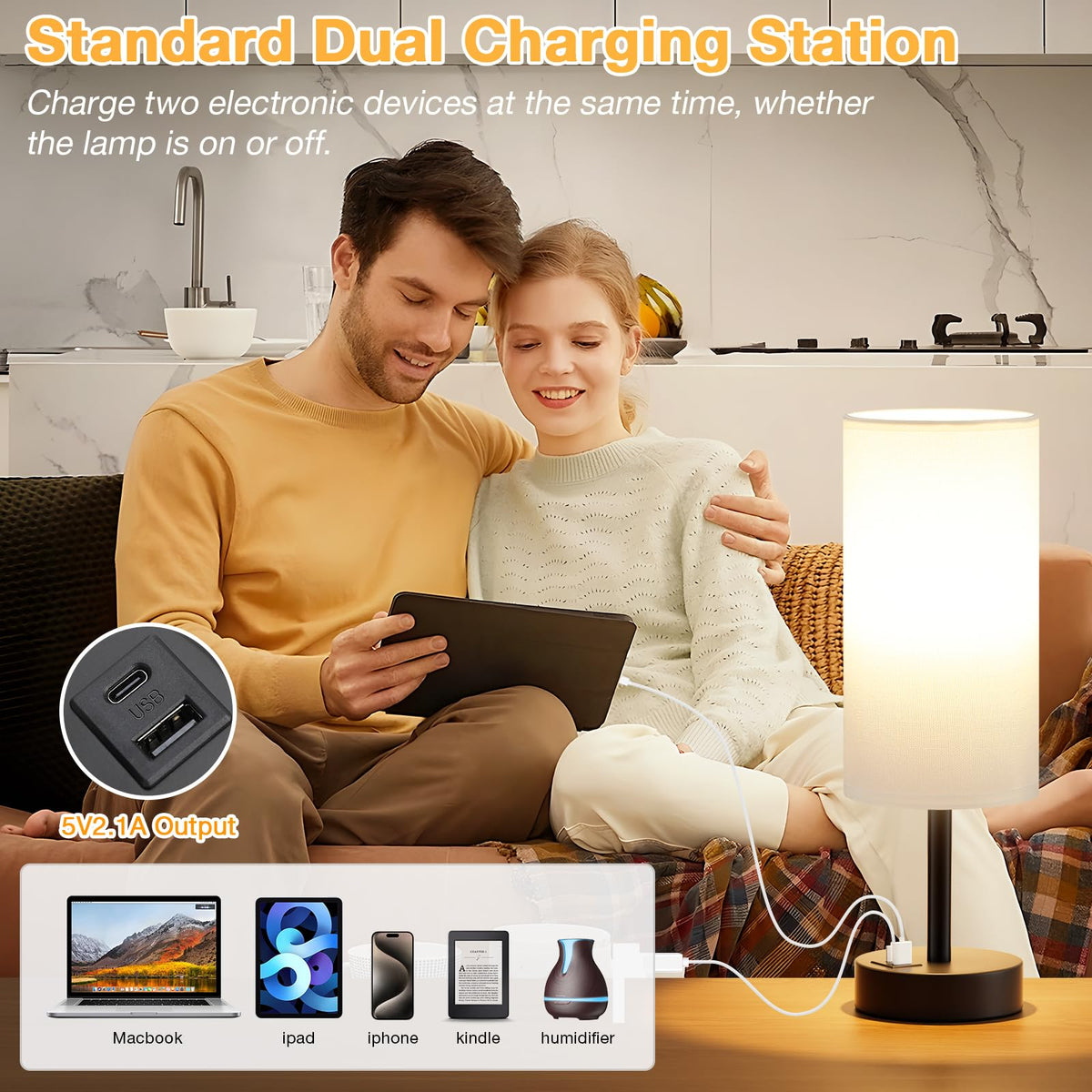 Q: Can I charge my devices while using the lamp?A: Yes, the lamp has a built-in USB A and Type C charging station that allows you to charge two devices simultaneously, regardless of whether the lamp is turned on.