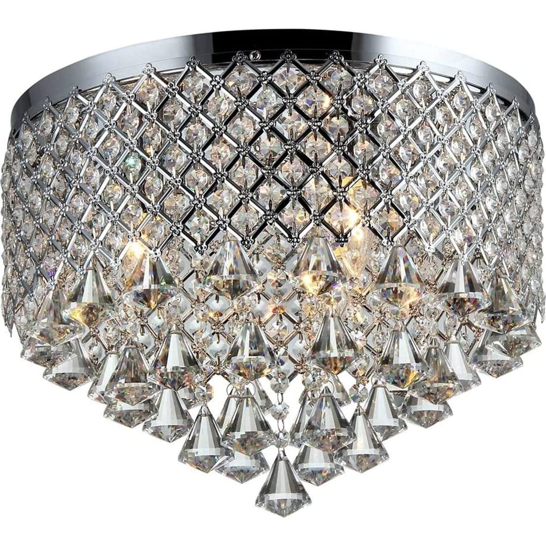 Whse of Tiffany 3-Light Crystal Flush Mount Light, Chrome, 16in, Iron, Model X6611/3