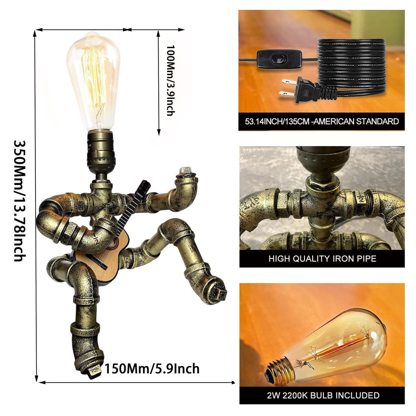 ≪ Material:Iron,Steel,Metal Size:13.8 X5.9 Inch Design:Steampunk Seated Guitar Player Table Lamp Switch Types: Push-Button Switch Package Includes: 1*Iron Pipe Robot 1*Edison E27 Bulb 1*Plastic Guitar Ornament 1*Guitar Stand 1*Plug-In Power Cord Notice: 1.Please Cut Off The Electricity Supply When You Install It. 2.Please Use It In Dry Environment 3.Due To Differences Between Display Screens, Actual Color May Vary Slightly From Image. 4.Because Of The Different Measurement Methods, Please Allow 1/12 Inch Difference Due To Manual Measurement.