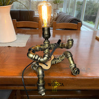 Wibota Music Guitar Table Lamp,Steampunk Table Lamp,Retro Guitars Steampunk Guitars Lamp,Cool Industrial Metal Guitar Lover Robo