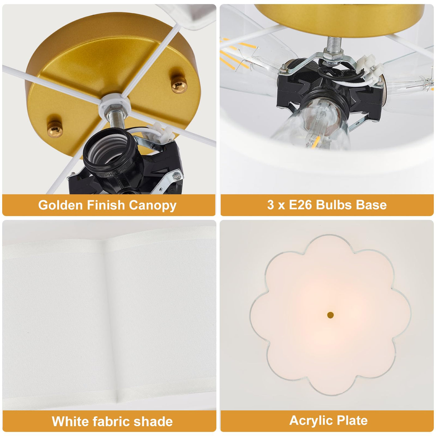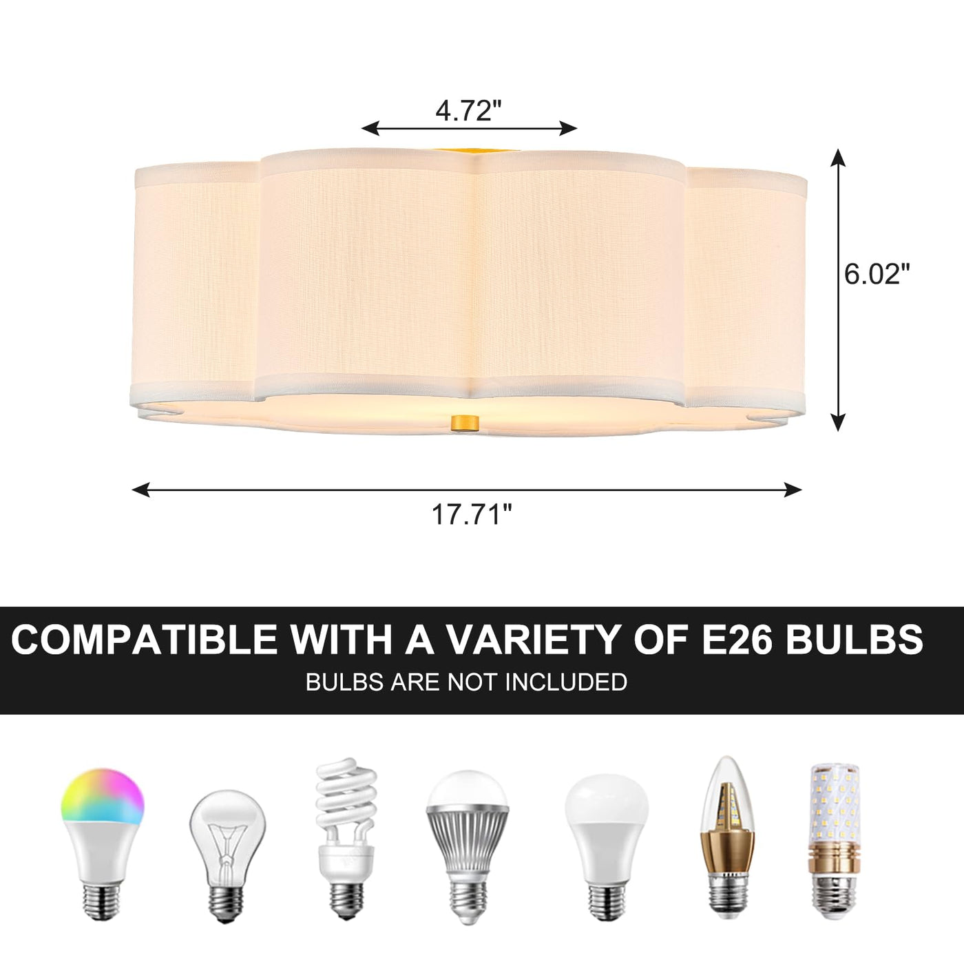 Widluth Modern Drum Semi Flush Mount Ceiling Light 17.71'' Modern 3-Lights Gold Drum Ceiling Lighting Fixture Vintage Linen Ceil