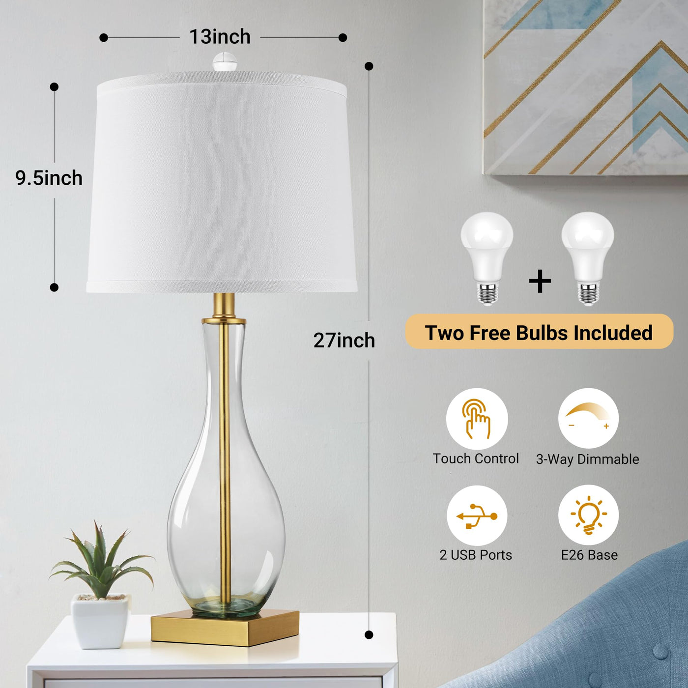 - **Energy-Efficient LED Bulbs Included**: Each lamp comes with two energy-saving LED bulbs, providing brightness equivalent to a 60W incandescent bulb while significantly reducing energy consumption. Enjoy long-lasting performance with a lifespan of over 25,000 hours.