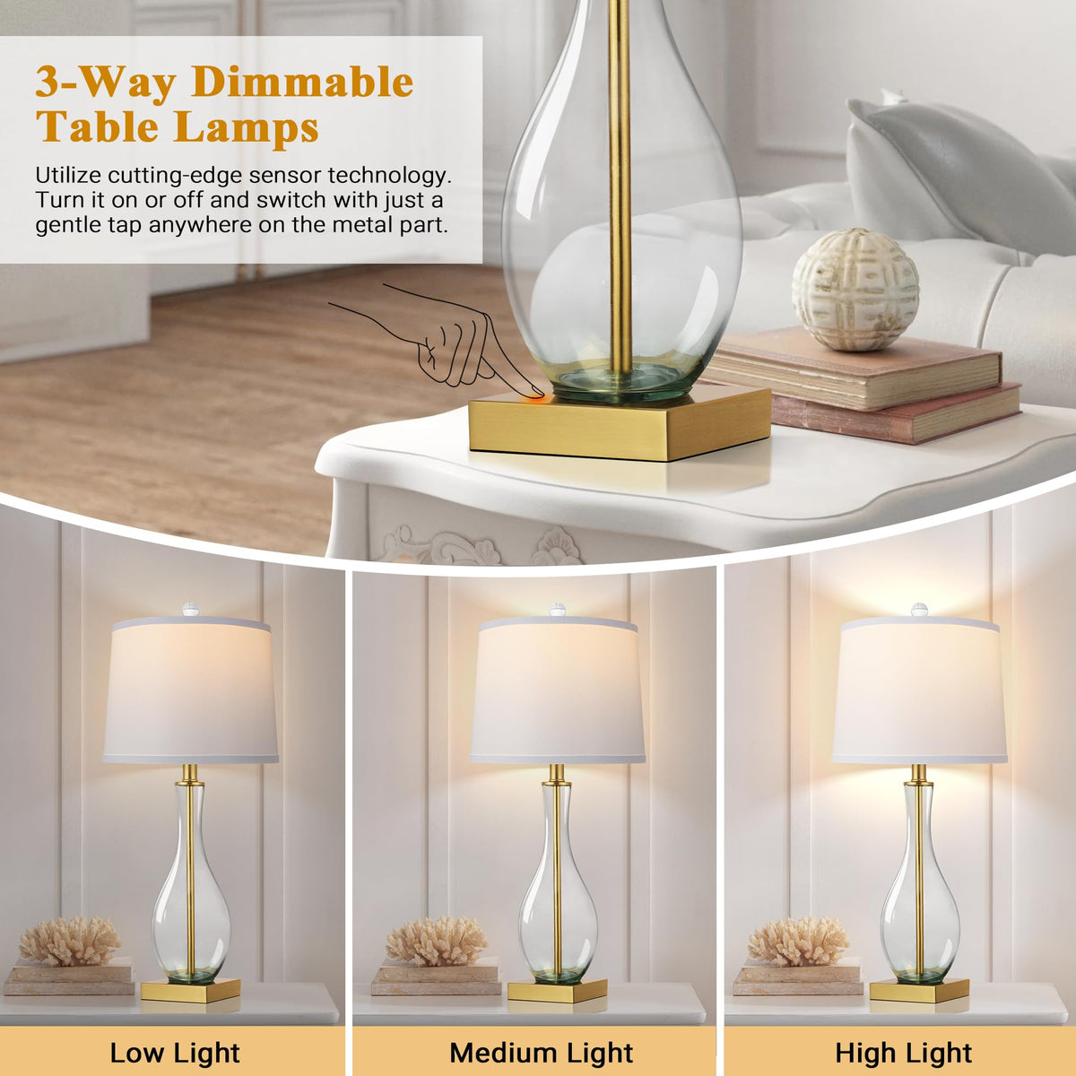 - **Noise-Free 3-Way Touch Control**: Experience effortless operation with the innovative touch control feature. Simply tap any part of the lamp base to choose from three brightness levels—low, medium, or high—tailored to your needs at any time. Enjoy a quiet ambiance, free from the distractions of traditional switches.