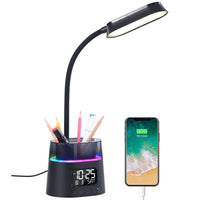 Wilit Led Kids Desk Lamp, Dimmable Study Lamp For Home Office Desk Accessories, With Pen Holder & Clock, Usb Charging, Rgb Night