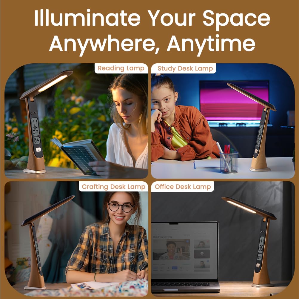 The WILIT Rechargeable Light is your ultimate lighting companion for any task. Whether you're working late at your desk, reading your favorite book, or tackling a DIY project, this compact desk lights for home office is designed to fit seamlessly into your lifestyle. With 3 color temperature settings (Warm, Natural, Cool) and stepless dimming, you can customize the cute desk lamp to create the perfect ambiance for any activity. Whether you need soft, warm light for reading, bright light for work, or neutral light for crafting, this lamp has you covered. Plus, the eye-care LED technology ensures that your eyes stay comfortable, reducing strain and fatigue even after long hours of use. A unique feature of the WILIT lamp is its built-in time display-an easy-to-read clock on the base that keeps you on track while working or studying, helping you stay organized and manage your time efficiently. Its foldable and portable design makes it easy to take with you wherever you go, whether you're moving between rooms, traveling, or working in a small space.