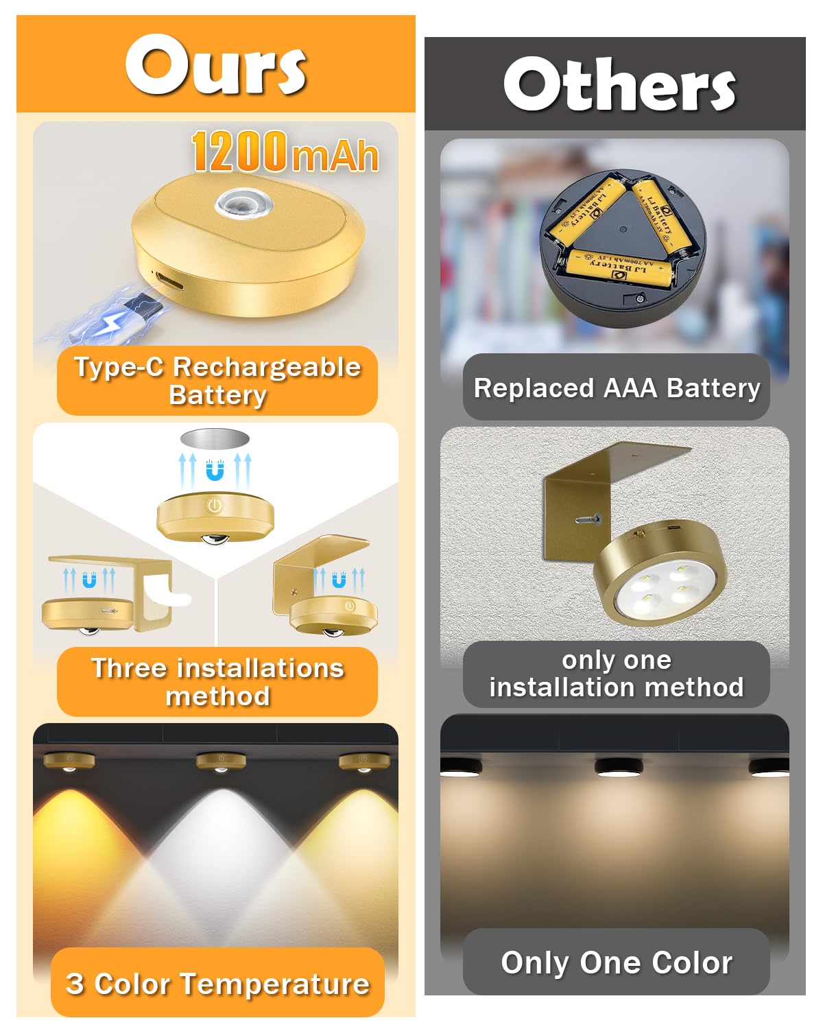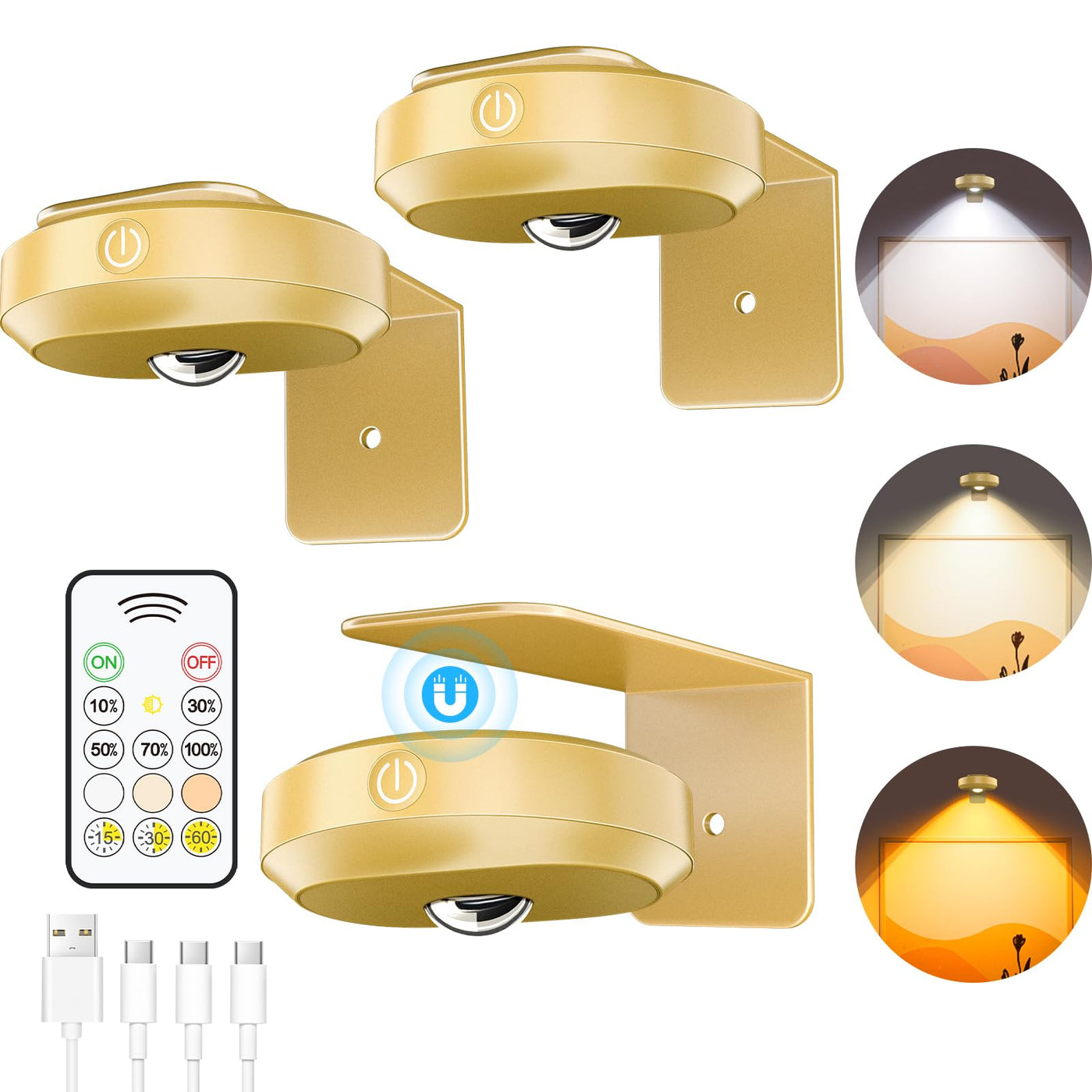 Willed Rechargeable Picture Lights For Wall,1200Mah Battery Operated Wall Frame Lights,Puck Lights With Remote,Dimmable & Timer