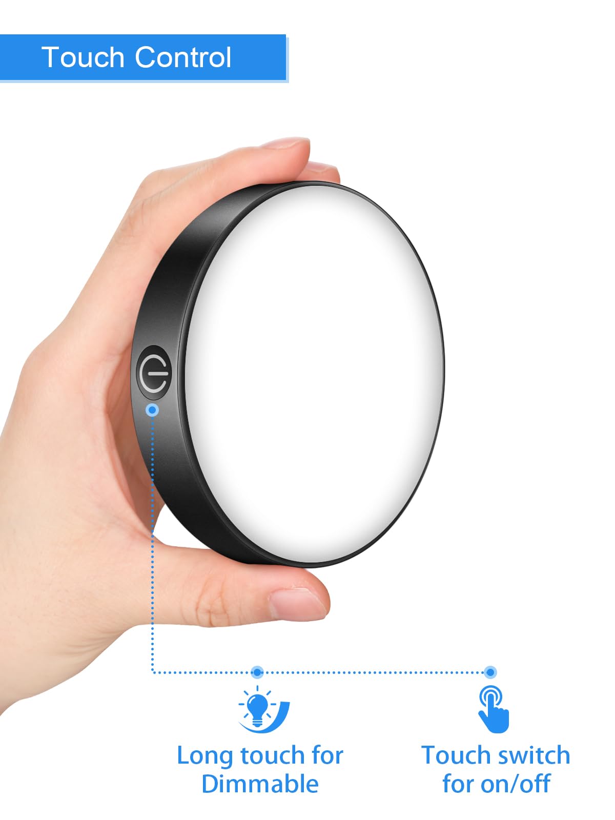 WILLED Tap Light Rechargeable LED Puck Light 6000K Dimmable 2 Pack Black Vinyl WJP-018