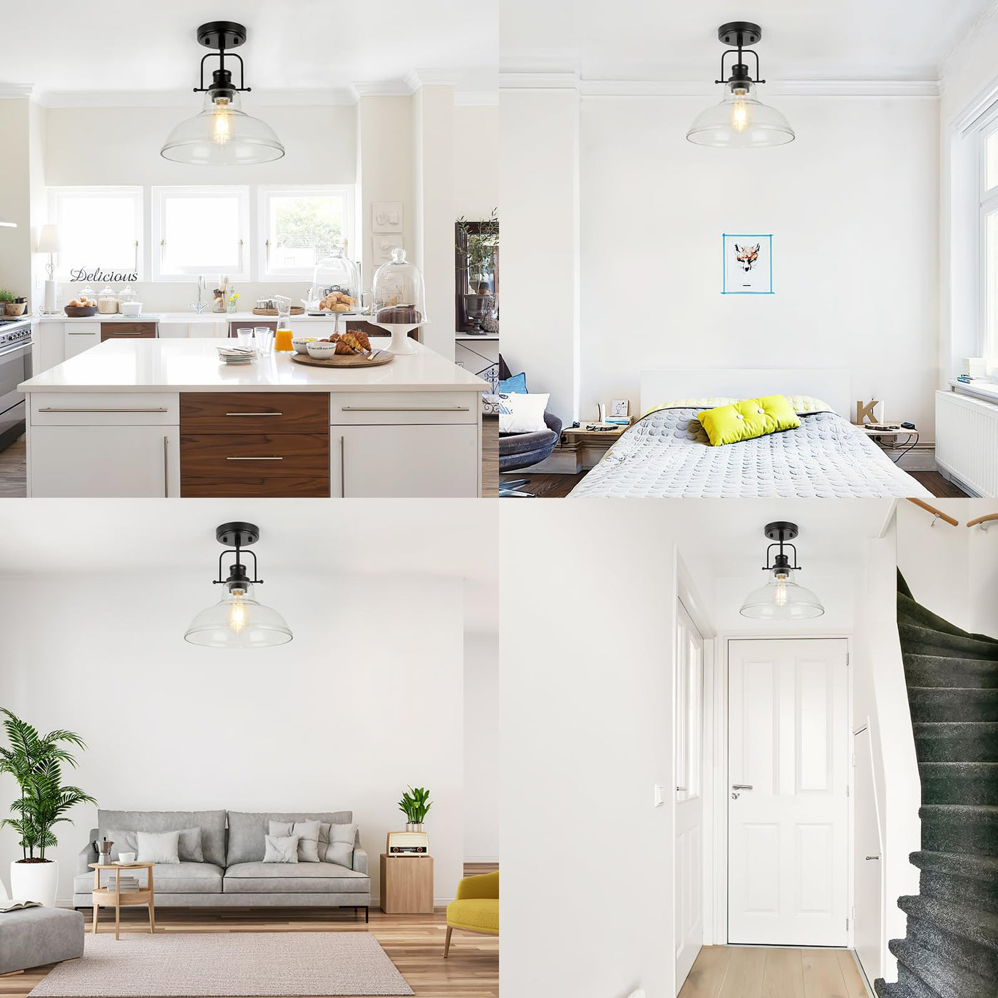 Q: What materials are used in the construction of the WILON ceiling light?A: The WILON Semi Flush Mount Ceiling Light is made from premium metal and clear glass materials, ensuring both durability and a stylish aesthetic that complements modern farmhouse decor.