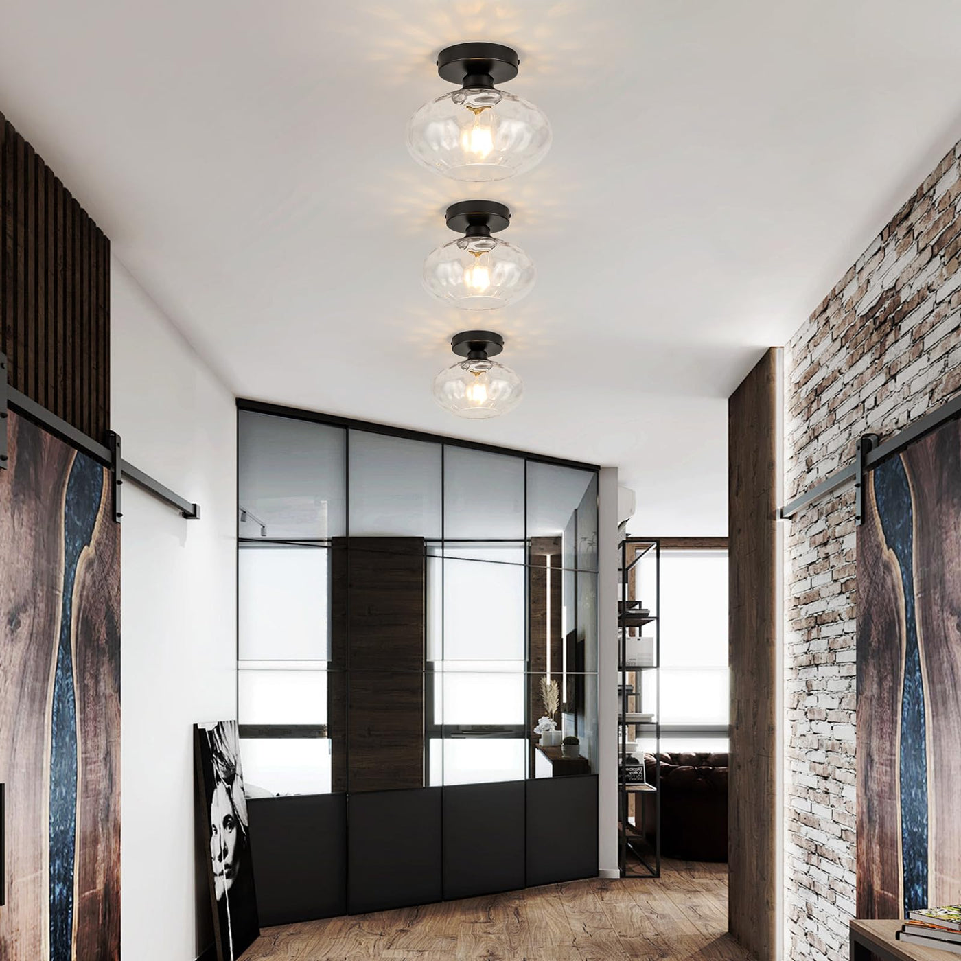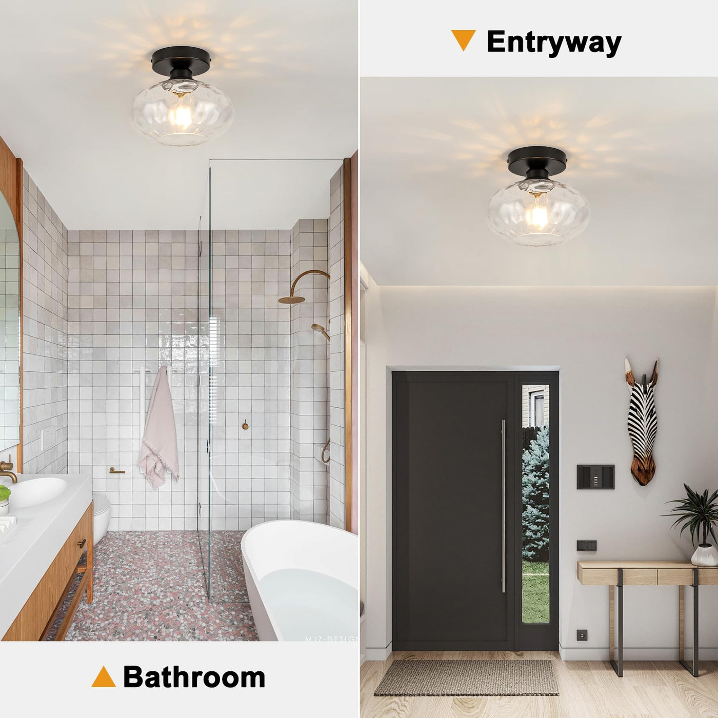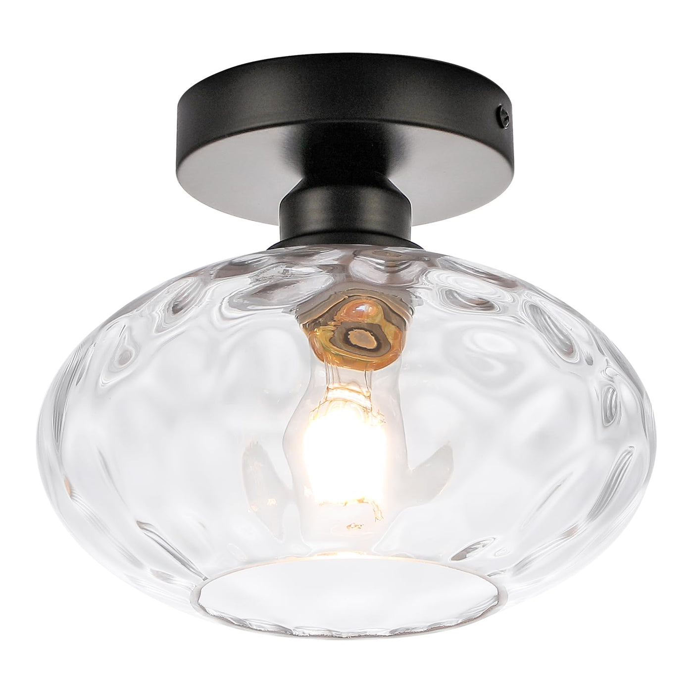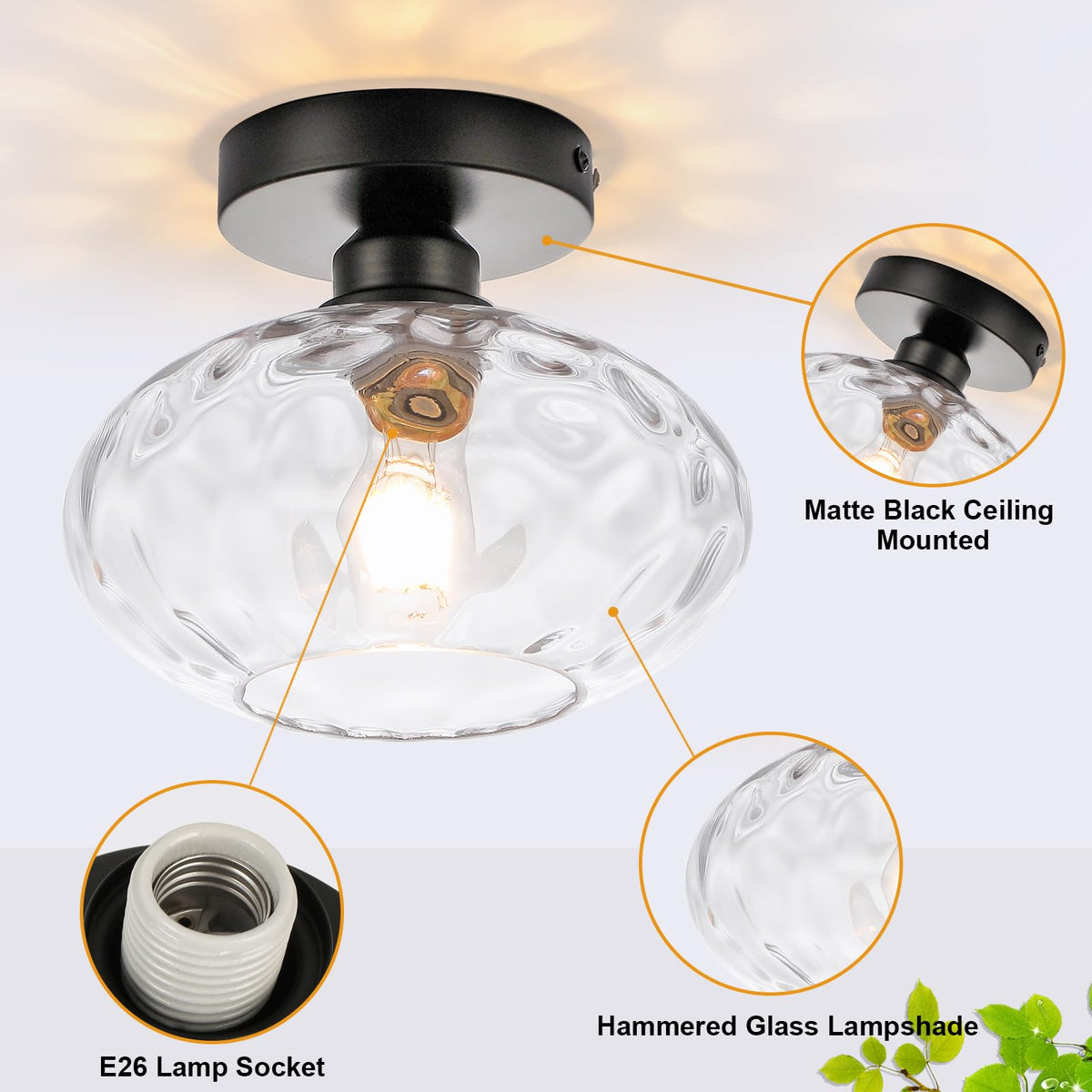 Wilon Industrial Semi Flush Mount - 8.66'' Hammered Clear Glass Ceiling Light Fixture - Black Bathroom Light - Kitchen, Bedroom,