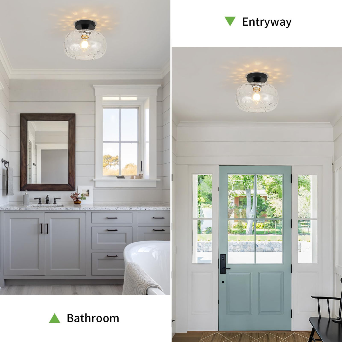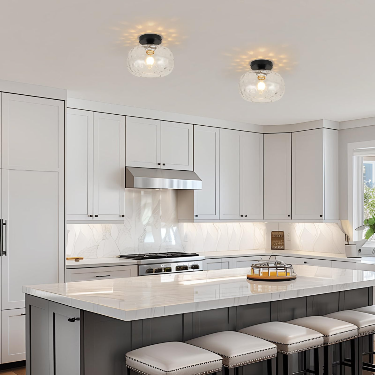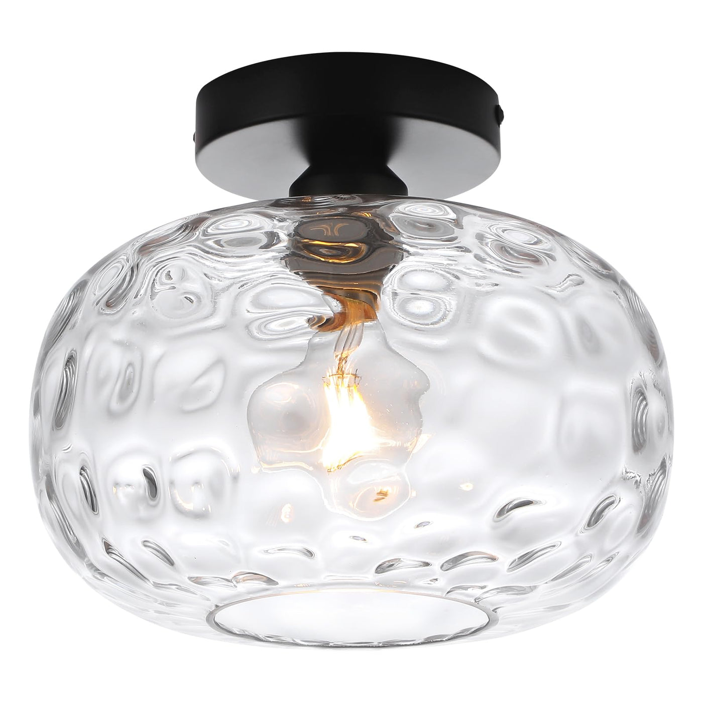 Wilon Industrial Semi Flush Mount Ceiling - 9.84'' Hammered Glass Ceiling Light Fixture Farmhouse Close To Ceiling Lights Black