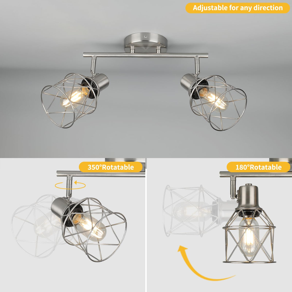 Wilon Industrial Track Lighting Kit, 2 Light Modern Track Lighting Fixtures Brushed Nickel Flush Mount Ceiling Light Rotatable L