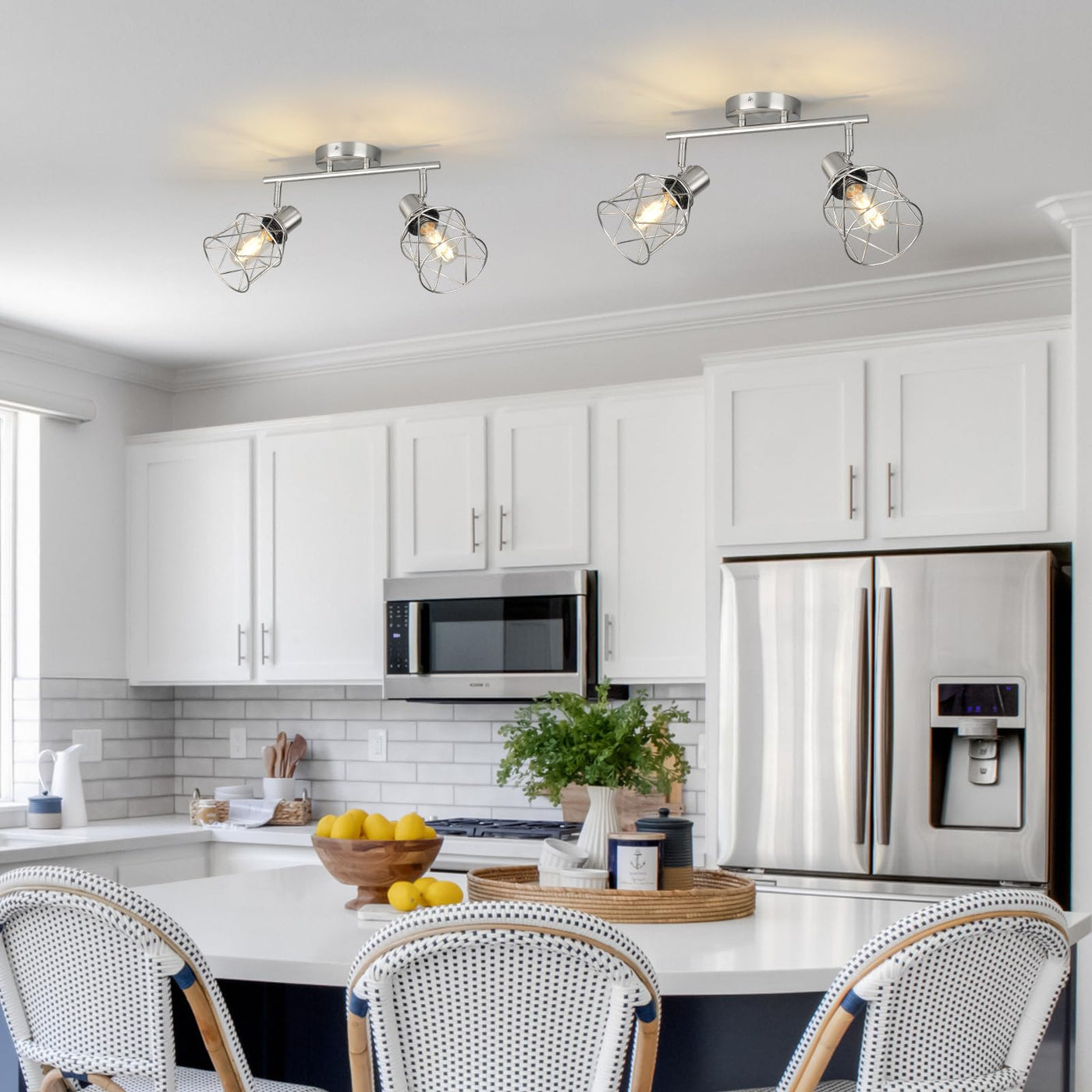 Wilon Industrial 2 Light Track Lighting Kit, Modern Track Lighting Fixtures Brushed Nickel Flush Mount Ceiling Light Rotatable Light Head E26 Base Ceiling Spotlight For Kitchen Dining Room Hallway
