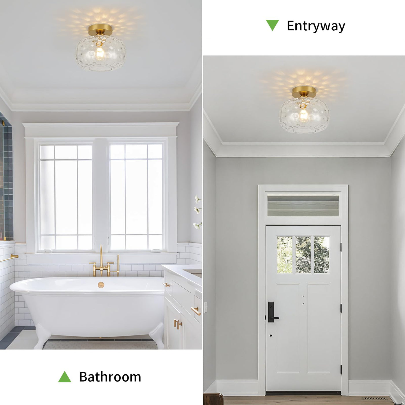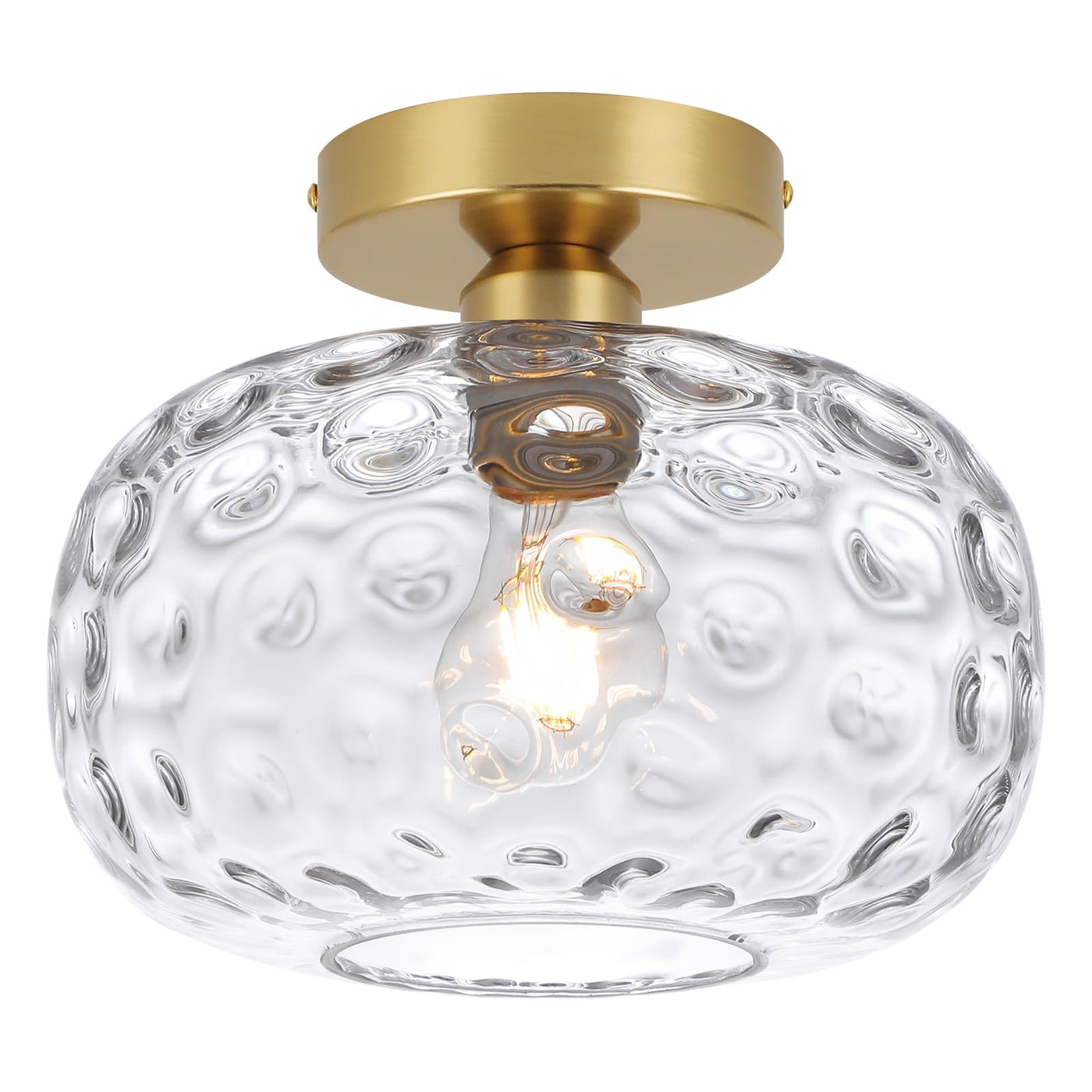 Wilon Modern Gold Semi Flush Mount Ceiling Light - Kitchen Ceiling Light Fixture 9.84'' Hammered Clear Glass Shade Hallway Light