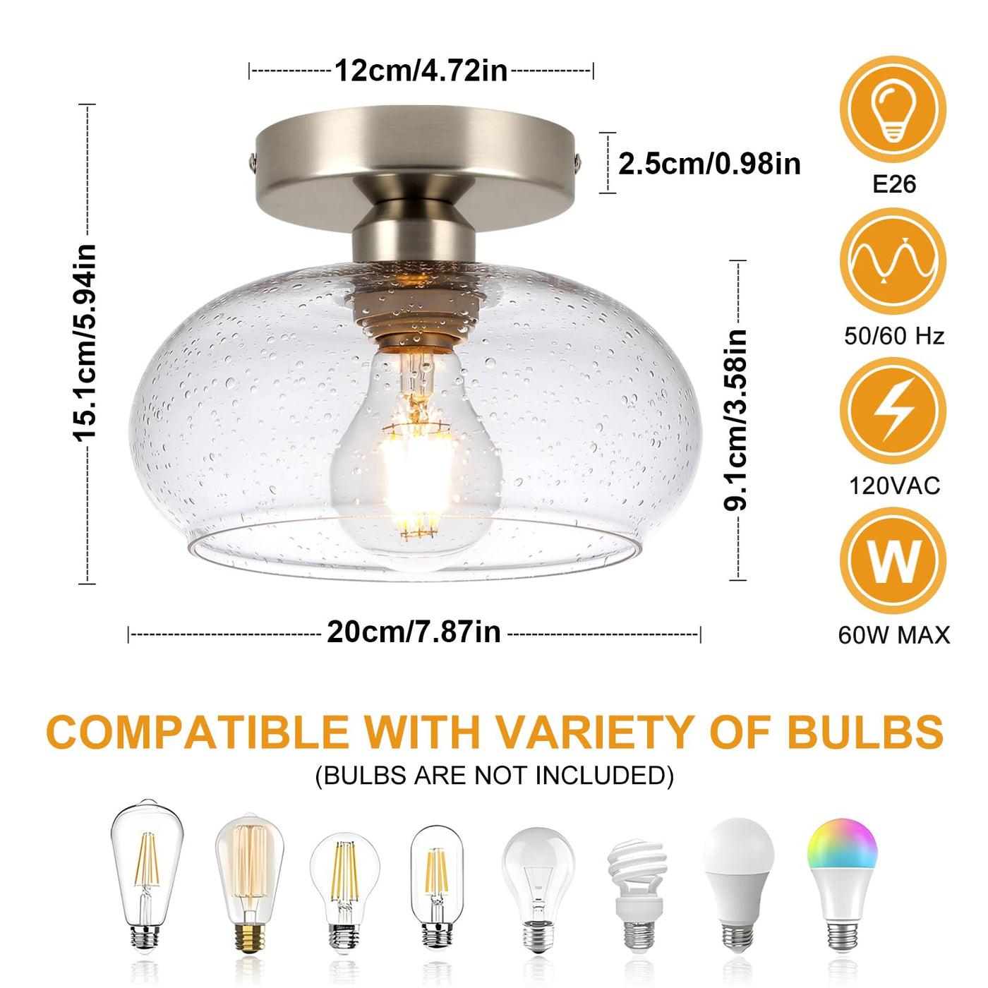 Q: What type of bulbs are compatible with the WILON Modern Semi Flush Mount Ceiling Light?A: The WILON Modern Semi Flush Mount Ceiling Light is compatible with E26 base bulbs, including incandescent, LED, CFL, and halogen bulbs. Please note that the bulbs are not included, and the maximum wattage supported is 60W.