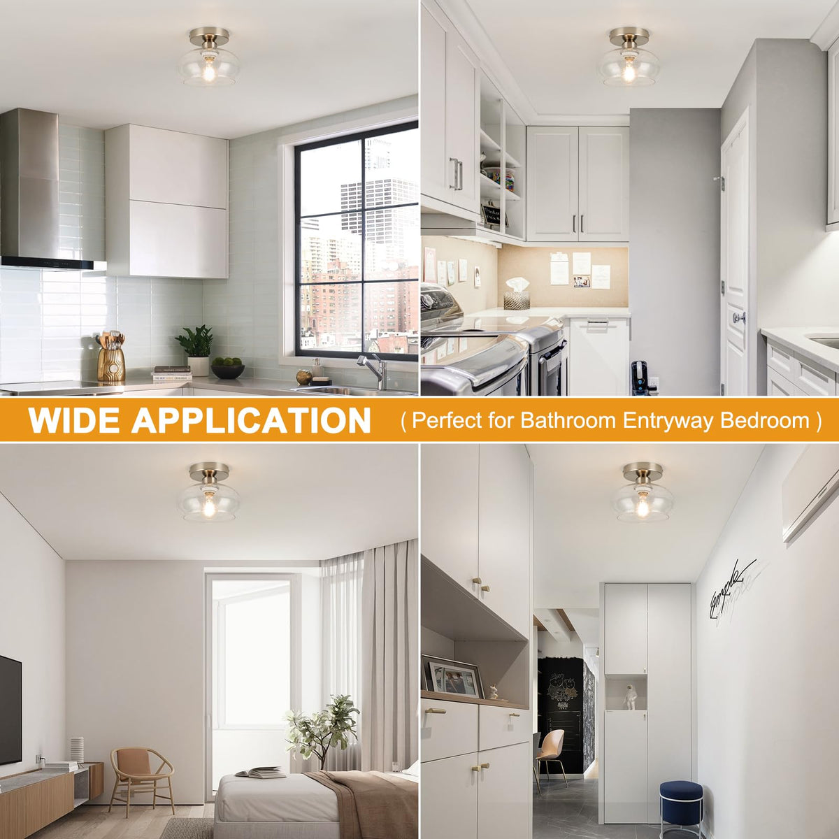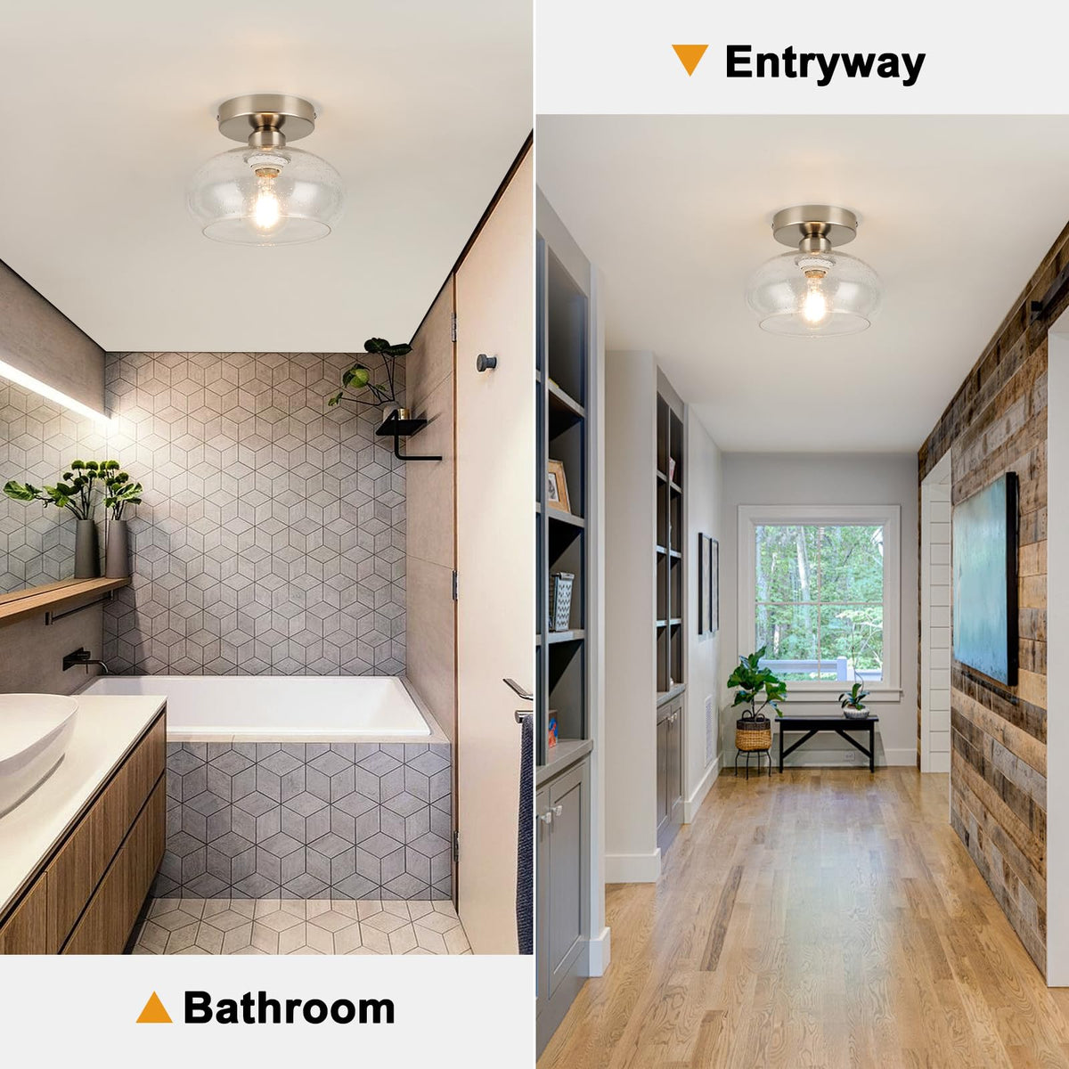 Q: Can this ceiling light fixture be used in a bathroom or kitchen?A: Yes, this ceiling light fixture is versatile and can be used in various settings, including bathrooms, kitchens, hallways, laundry rooms, and entryways, making it an excellent choice for modern home decor.