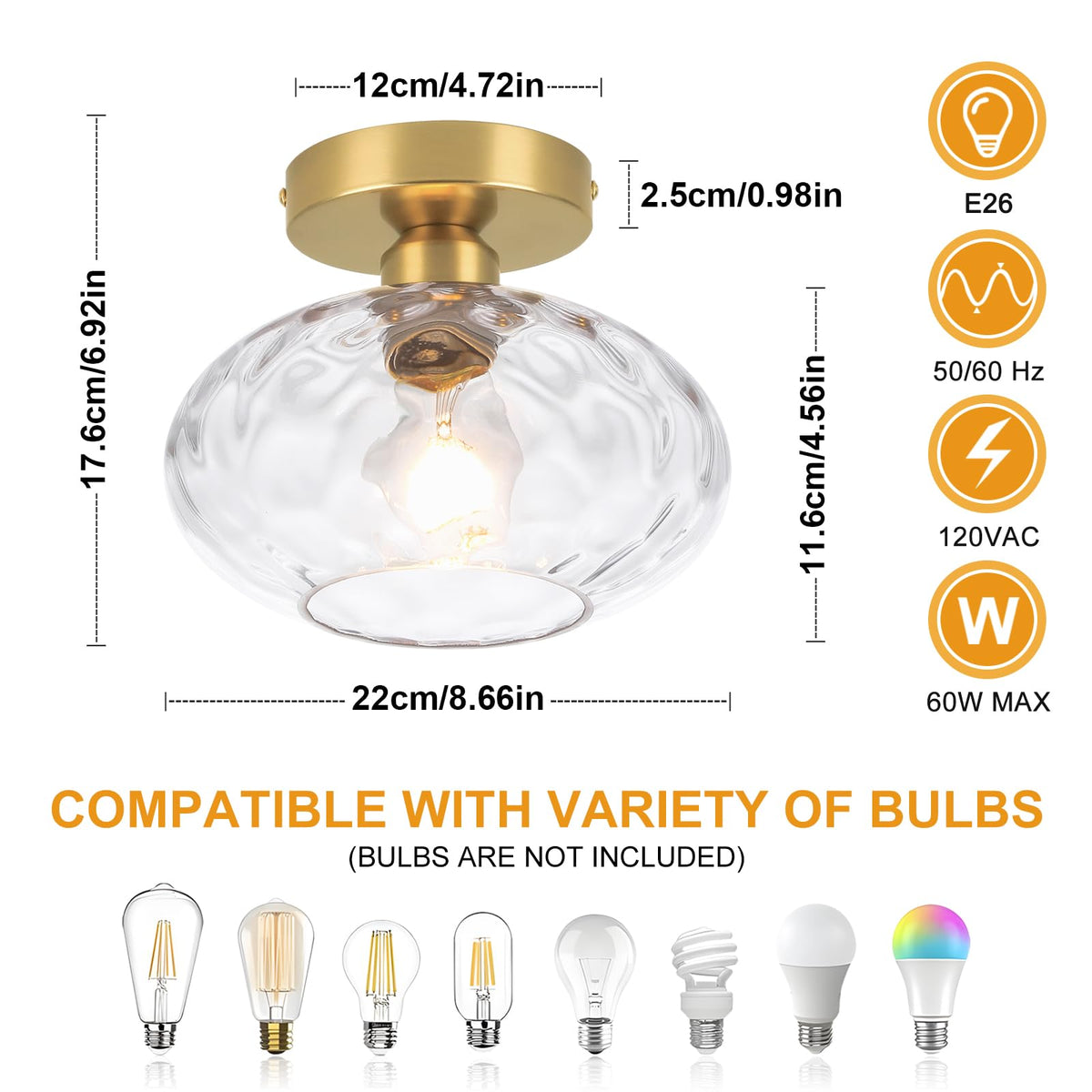 Q: What are the dimensions of the ceiling light fixture?A: The ceiling light fixture features a glass shade with a diameter of 8.66 inches (220mm), a canopy diameter of 4.72 inches (120mm), and a height of 6.92 inches (176mm), making it suitable for various spaces.