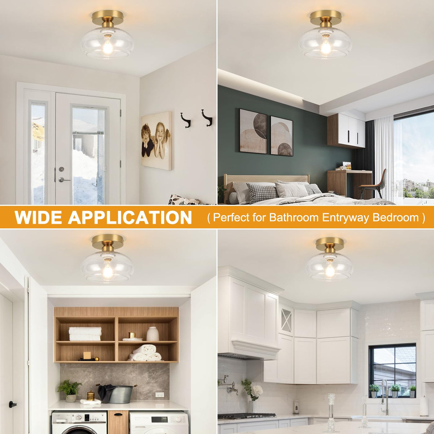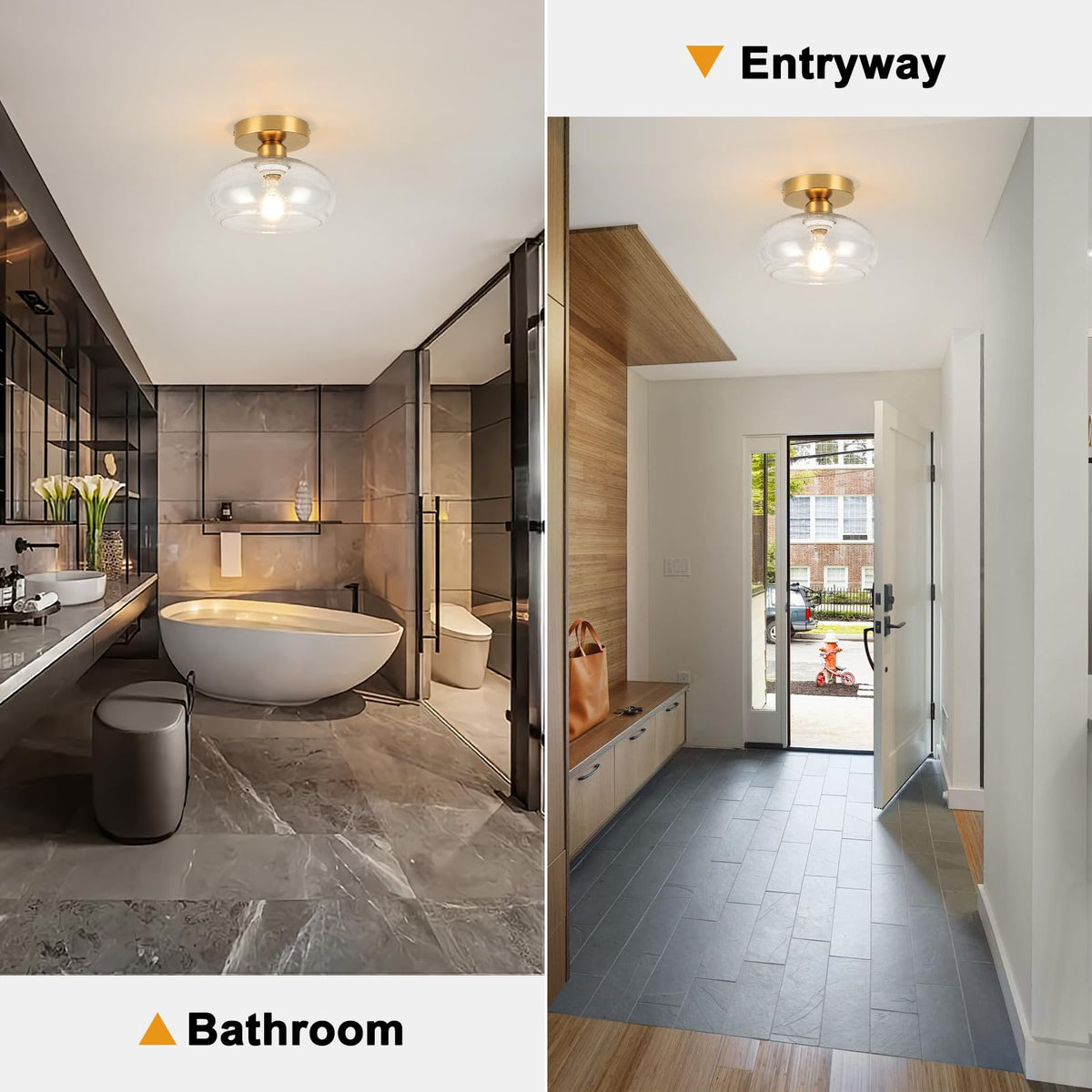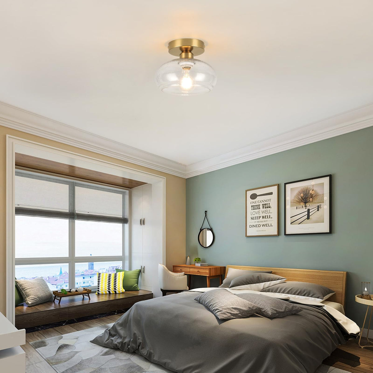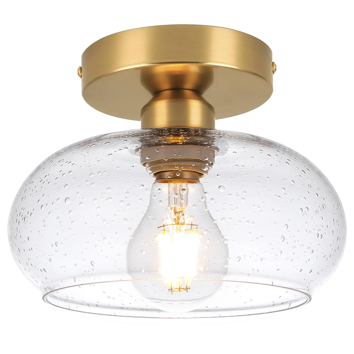 Wilon Semi Flush Mount Ceiling Light, Small Seeded Glass Ceiling Light Fixture Modern Gold Bathroom Ceiling Light Kitchen Lighti