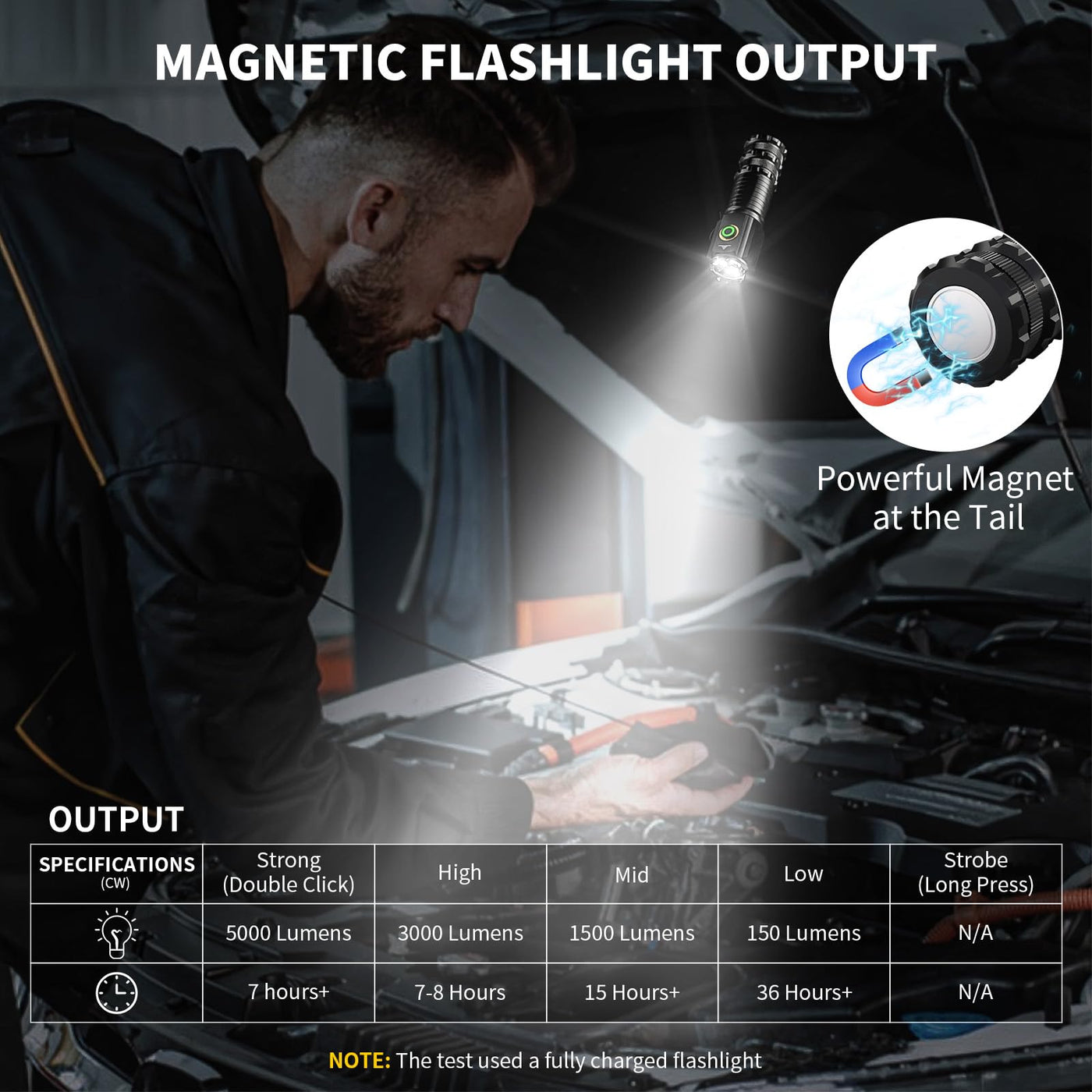 Wind&Moon Mini Led Flashlight Rechargeable, 5000 Lumens Small Powerful Pocket Flashlights With Clip, 5 Modes, 2200Mah Usb Magnet