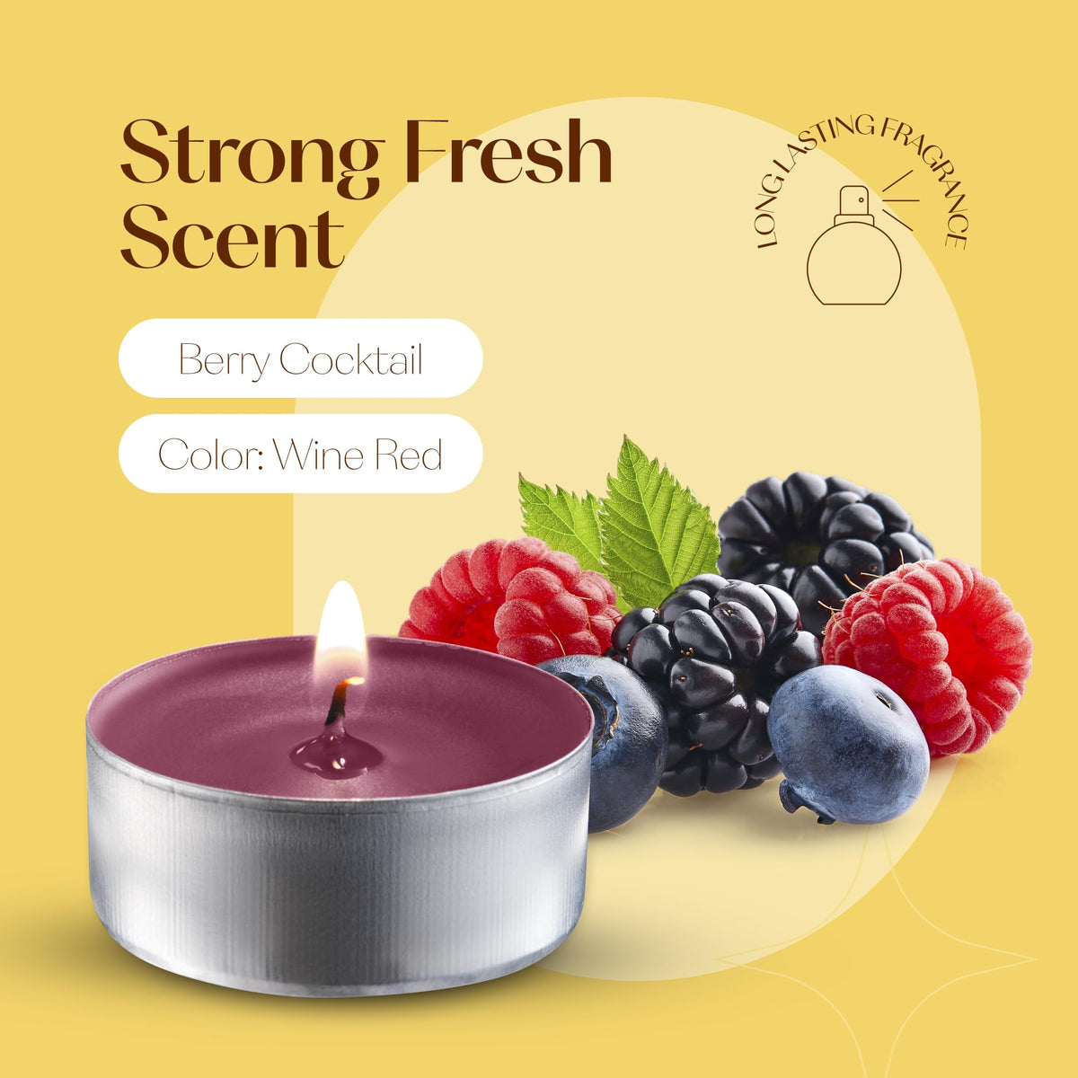 Wine Red Scented Tealight Candles - 12 Scented Tea Lights Candles - Red Tea Lights Candles With Long Lasting Aromas - Berry Cocktail Fragranced Red Tealight Candles - 4 Hour Burn Time