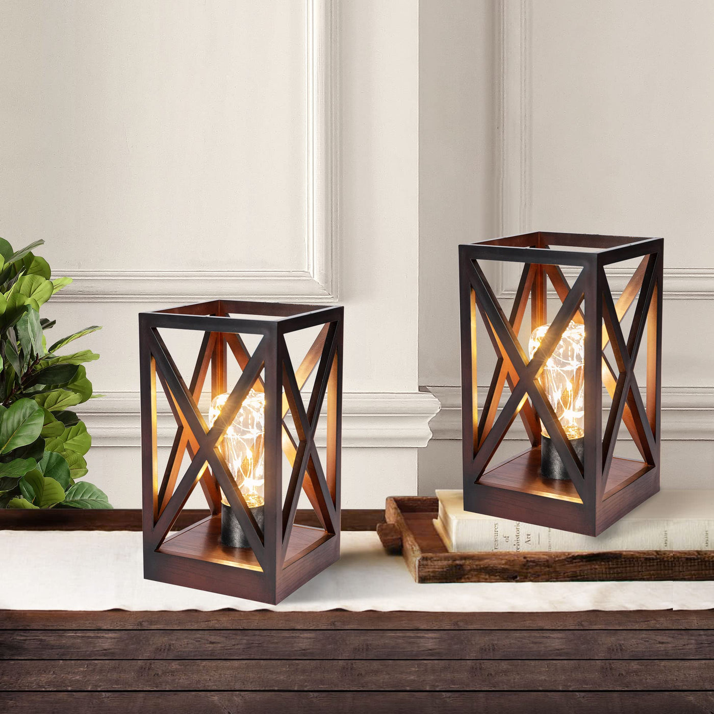 Wingbo 2 Pack Retro Battery Powered Table Lamps, Battery Operated Cordless Lamp Set, Portable Nightlight Decorative Light For Li