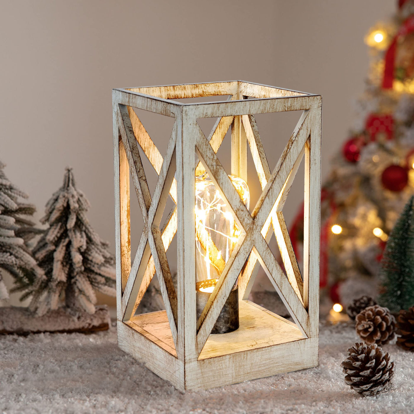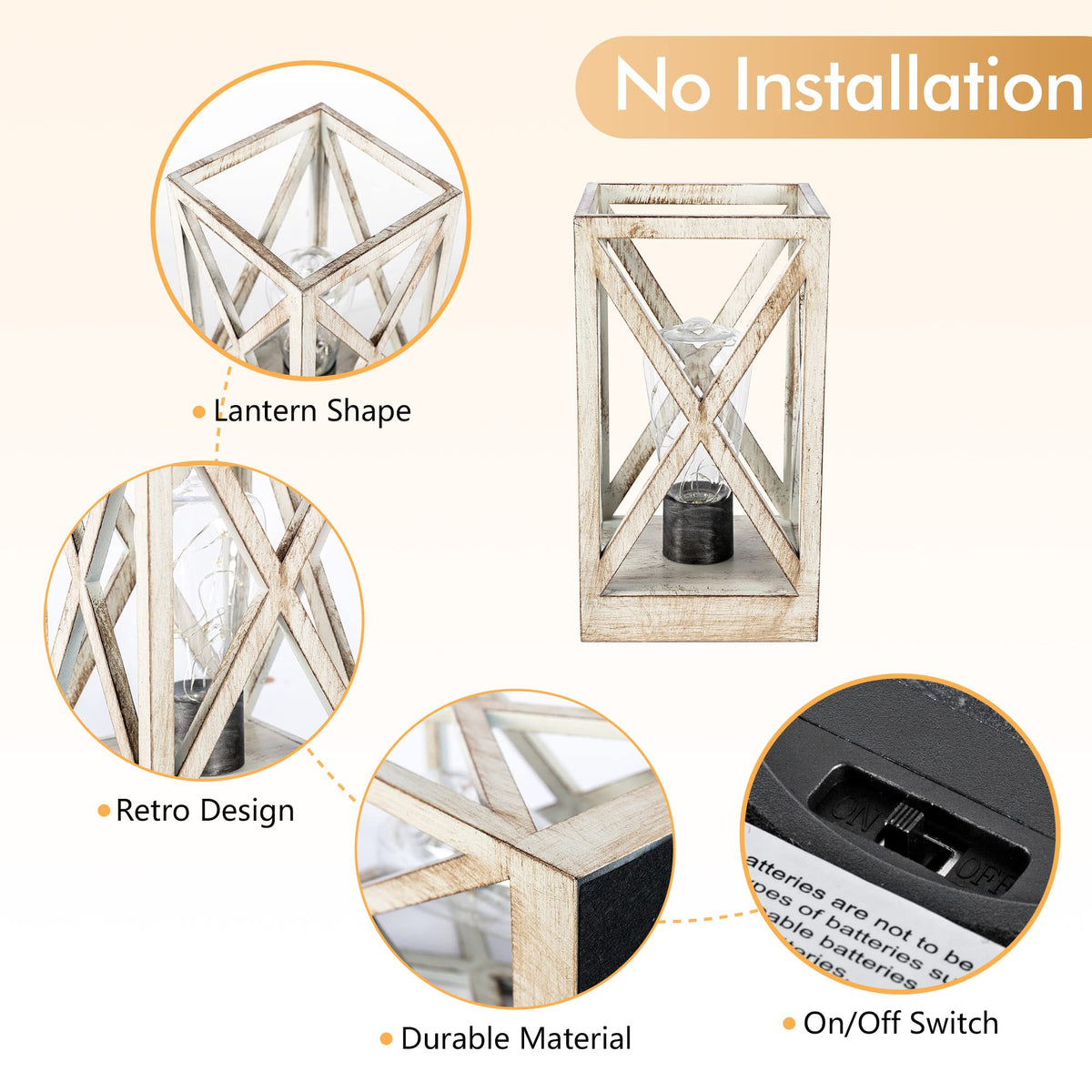 Dimensions 9 inches X 5 inches Transform your space with this pair of compact modern rustic wooden lantern with a hint of rustic country vibe place them on your desk, nightstand or your outdoor dining table Powered by 3 AA batteries, our cordless lantern can be taken wherever you desire, so you can enjoy your drinks on the deck, in your backyard with the warm glow cast through the gorgeous cage lantern (2W bulb included) You can always have a hassle-free shopping experience Bring this sexy pair home now