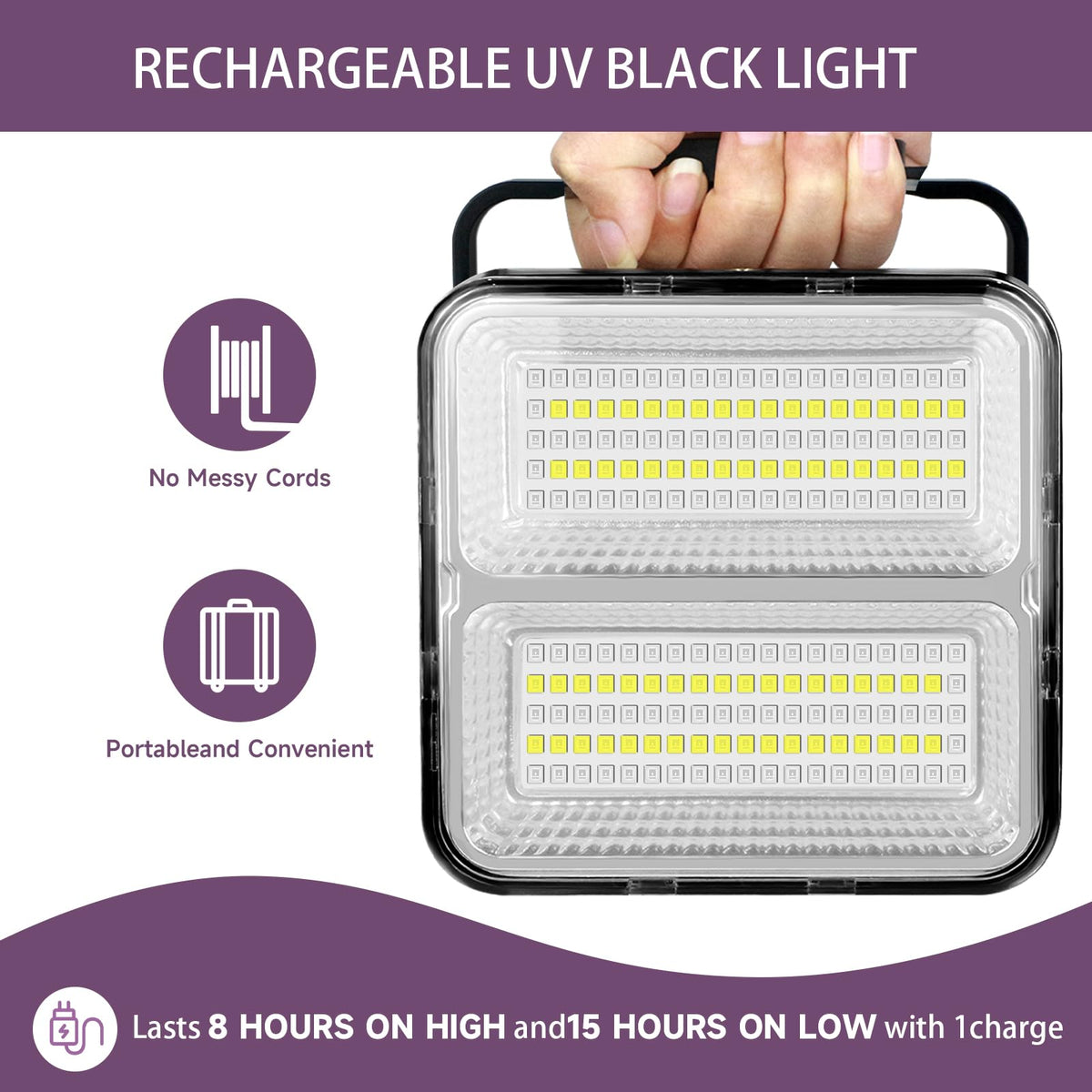 Winniw 9600 Mah Rechargeable Black Light, Dimmable Uv Light, 200 Led 395 Nm Uv Flashlight Camping Blacklight, Halloween, Body Painting, Uv Paint, Fluorescent Effect