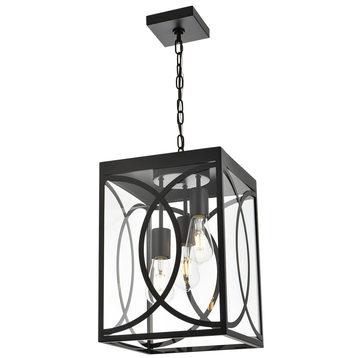 Winshen 3-Light Outdoor Pendant Light Fixture, Black Metal Chandelier With Clear Glass