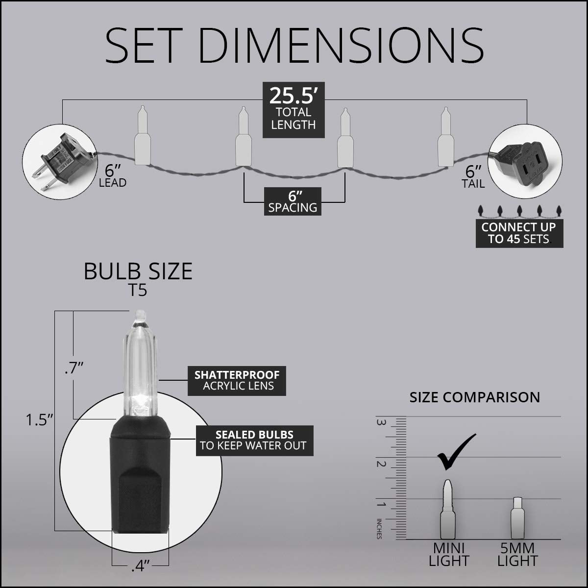 Wintergreen Lighting 50 T5 Green Christmas Tree Lights, 25.5' Led Christmas Lights Mini Lights St. Patricks Day Lights Halloween Lights Holiday Lights