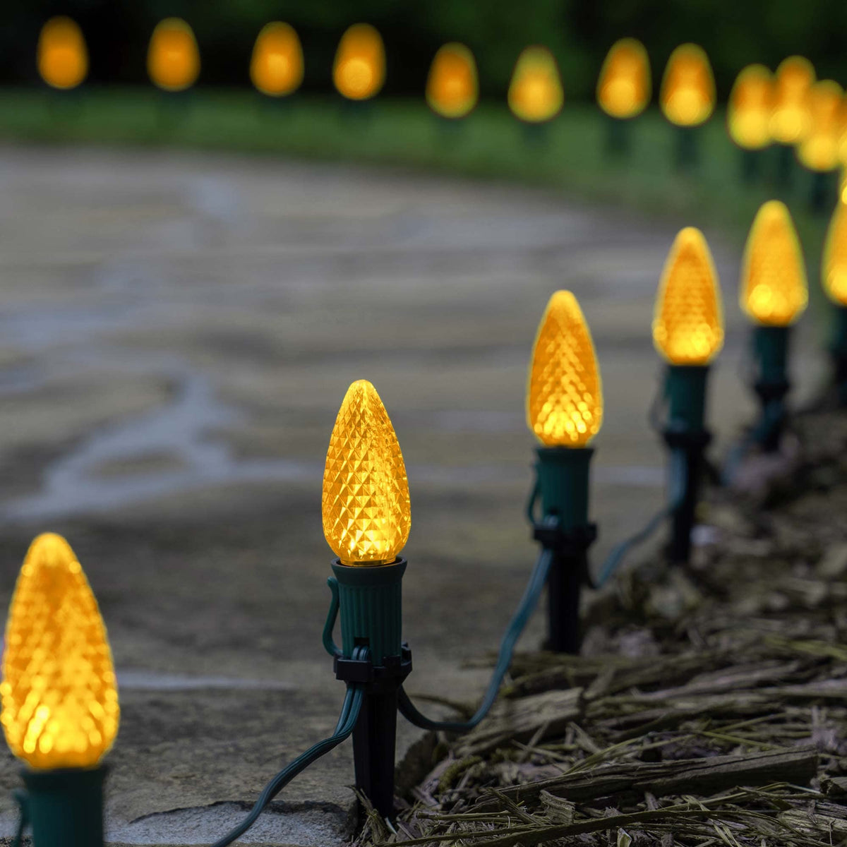 Wintergreen Lighting Box Of 25 Opticore C9 Led Gold Christmas Light Bulbs - Replacement Led Christmas Lights Heavy Duty enhanced Outdoor Christmas Lights E17 Base (Gold Faceted)