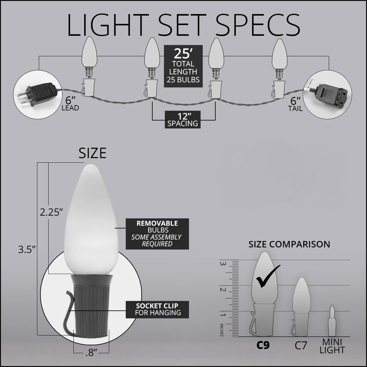 Wintergreen Lighting C9 OptiCore LED Commercial Outdoor Christmas Lights - Heavy Duty Christmas String Lights; Green Wire (25 Li
