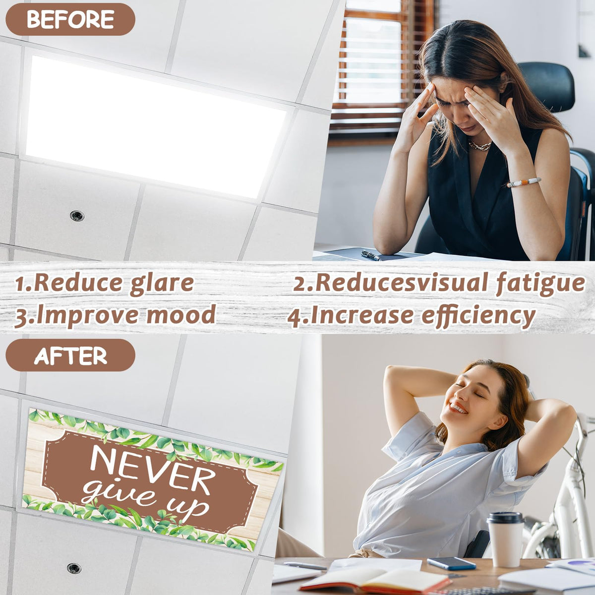 Q: Can these light covers help reduce headaches and eye strain?A: Yes, these fluorescent light covers are designed to alleviate eye strain and reduce glare caused by bright ceiling lights, potentially helping to minimize headaches.