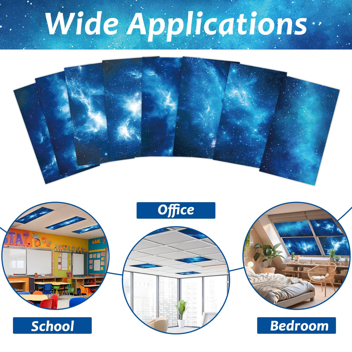 Enhance your learning environment with the Wiooffen Starry Sky Blue Fluorescent Light Covers. Designed to alleviate glare and reduce eye strain, these light filters are perfect for classrooms, offices, hospitals, and any space with ceiling lights. By creating a soothing atmosphere, they help improve focus and productivity.