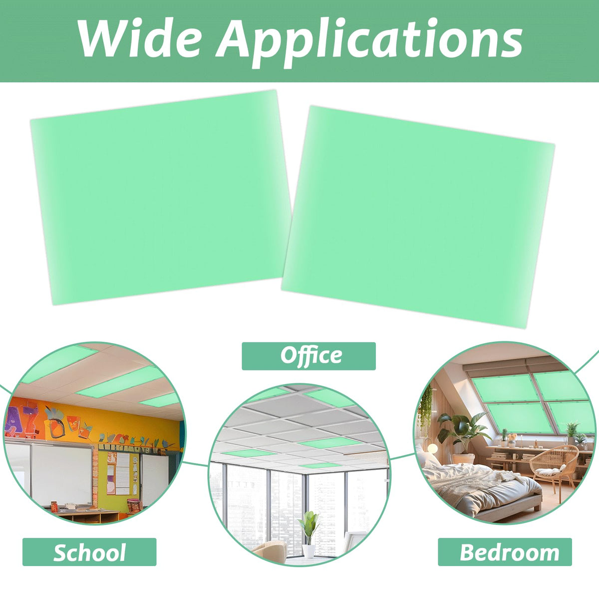 Q: What color are the Wiooffen fluorescent light covers?A: The fluorescent light covers are available in a vibrant green color, which can enhance the atmosphere of classrooms and offices.