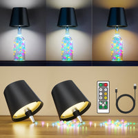 Wireless Bottle Lamp Shade,Wine Bottle Lights with Remote,2000mAh Liquor Bottle Lamp with RGB String Lights and Timer,5-Level Brightness &3 Color Temps Wine Bottle Lamp for Living Room,Bar(2 Pack) ?Wireless Bottle Lamp Shade with RGB Light String?:Fits DIY your wine bottle, the wireless bottle lamp is an excellent accessory that instantly elevates the look of any room. Designed to fit over the neck of your favorite wine bottle, it transforms an ordinary glass bottle into a unique, stylish wine bottle lights. Whether you?e using an old wine bottle, a vintage decanter, or a simple water bottle, this wine bottle lamp shade adds a beautiful touch of class and character to your decor?3 Color Temperature Settings & 5 Brightness Levels?: Our wine bottle lights offers 3 color temperature options(3000K, 4500K and 6500K), which can be adjusted to meet your lighting needs according to your dinner occasion and mood. In addition, this liquor bottle lamp also features 5 levels of brightness adjustment,which can be flexibly adjusted in different environments to provide you with the most comfortable and atmospheric lighting environment?Remote Control & Touch Control?: The wireless bottle lamp shade offer 2 control options. ? IR control: Please use the remote aiming at the light for easy to receive the remote signal. ?Touch control: 1.Short press for adjust color temperature, brightness and string light, 2. Long press for brighter and dimmer. whether you?e going for a modern, rustic, or vintage aesthetic. These rechargeable wine bottle lamp makes a great centerpiece for dining tables, living rooms, bedroom and bar?Memory Function & Timer Setting?:When the wireless wine bottle lights is turned off,the system remembers the current color temperature and brightness settings.When the wine bottle lights are switched on again,it effortlessly resumes your preferred ambiance.With 4 timer options on the remote control, you can effortlessly set the wireless bottle lamp shade to automatically turn off after 10, 30, 60, or 120 minutes. This feature is perfect for creating the perfect mood without the need to manually adjust, or for energy-saving purposes?Powerful LED Rechargeable Wine Bottle Lights with 2000mAh Battery? Equipped with an large 2000mAh rechargeable battery, this liquor bottle lamp offers rapid charging and enduring illumination. With just one charging cable included, your liquor bottle lamp can be fully recharged in a mere 2 hours. Once charged, enjoy up to 10 hours of continuous,uninterrupted lighting. Provide 18-months and responsive customer service to give you peace of mind