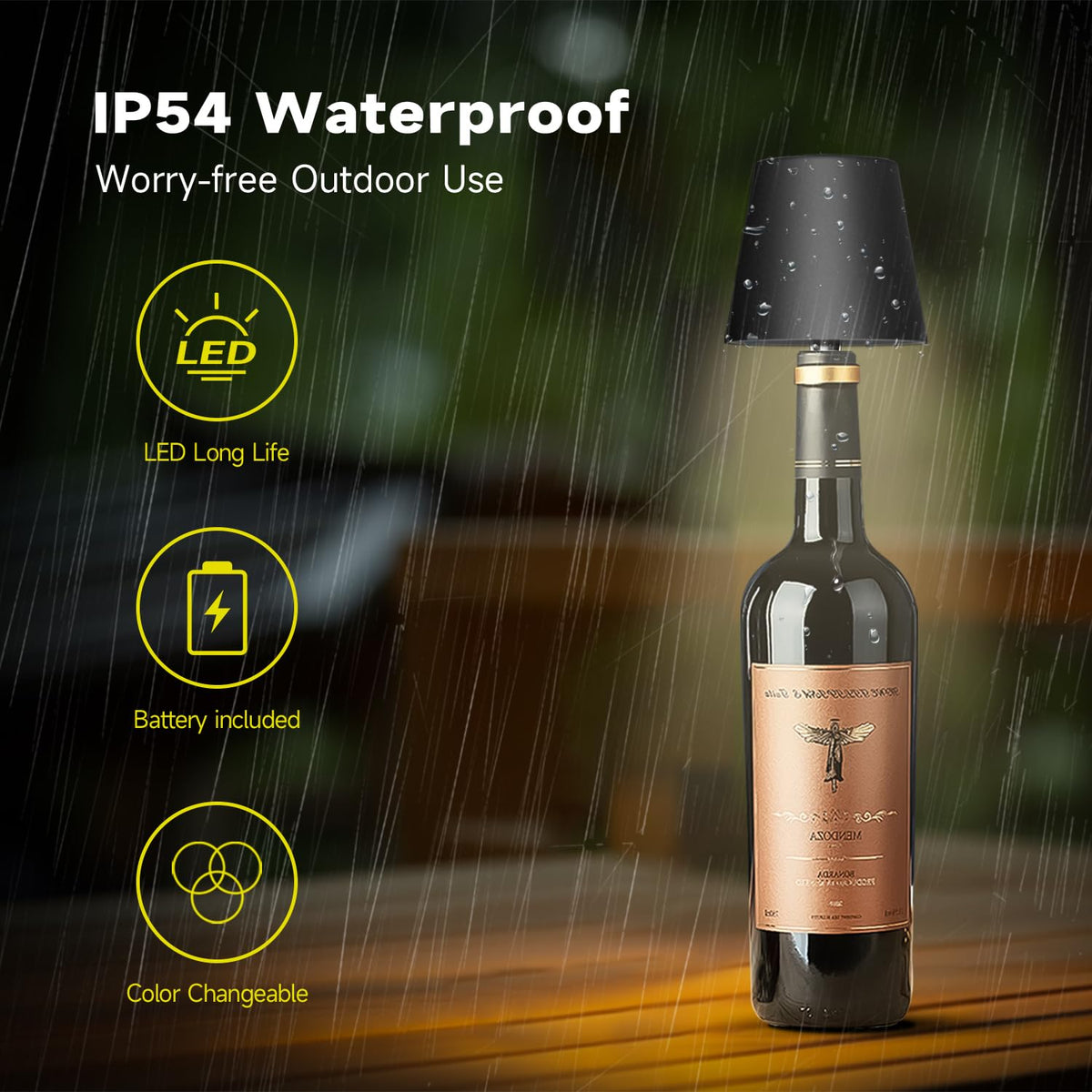 Q: Is the Hoide Wireless Bottle Lamp suitable for outdoor use?A: Yes, the Hoide Wireless Bottle Lamp is designed to withstand the elements and meets the IP54 waterproof standard, making it suitable for both indoor and outdoor use. It can handle light rain, ensuring your lighting remains uninterrupted in various weather conditions.