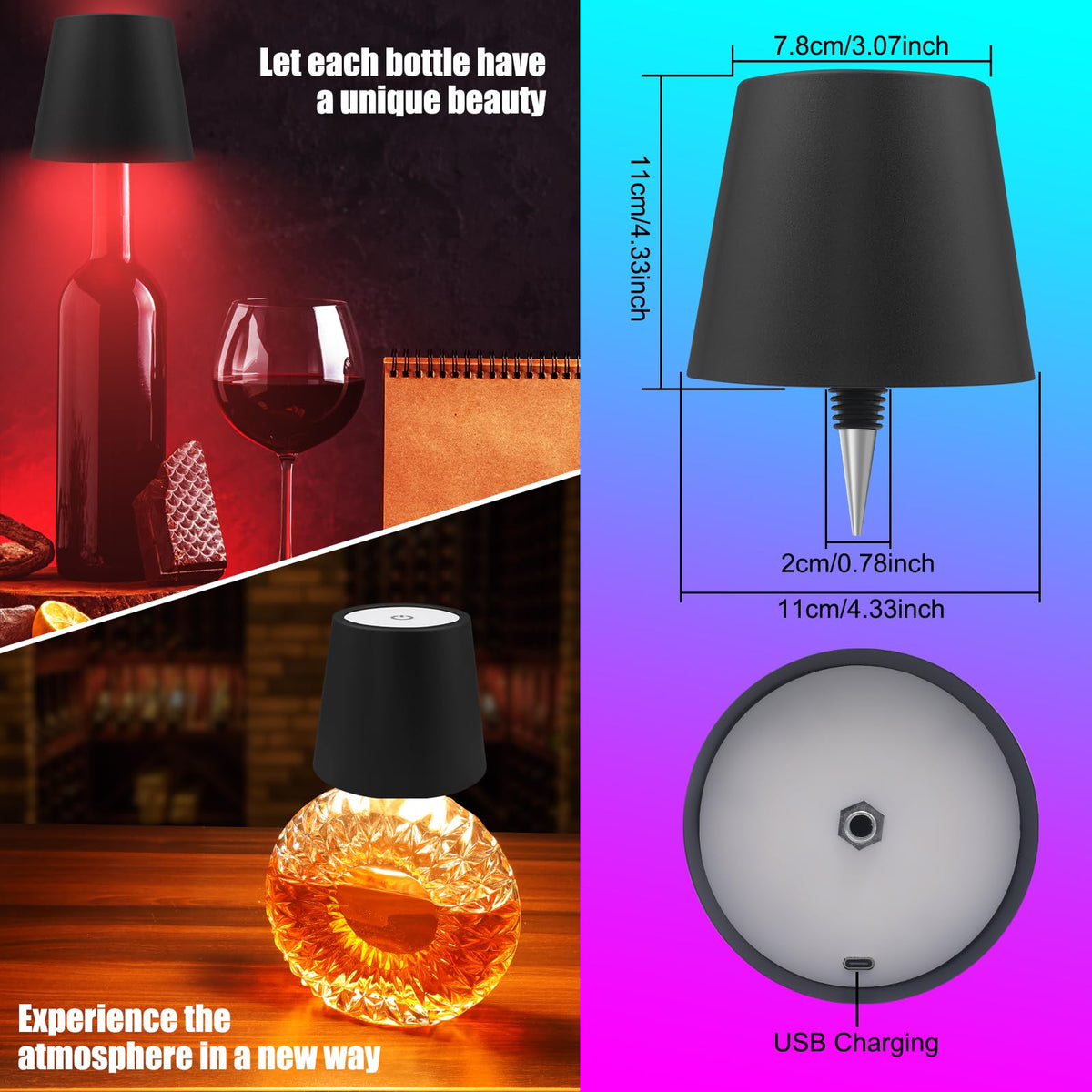 Simple Touch Switchingthe Wireless Bottle Lamp Offers Three Color Options And Stepless Dimming Capabilities Allowing You To Create The Perfect Ambiance For Any Occasion. A Short Touch Switches The Light Color Which Is Dividedinto Cold Light Warm Light And Natural Light And A Long Touch Adjusts The Light Brightness. Whether You Want A Warmcozy Glow Or A Vibrant Burst Of Color This Lamp Has Got You Covered?