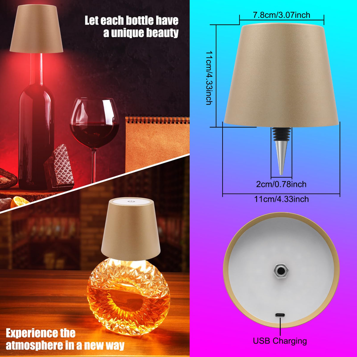Simple Touch Switchingthe Wireless Bottle Lamp Offers Three Color Options And Stepless Dimming Capabilities Allowing You To Create The Perfect Ambiance For Any Occasion. A Short Touch Switches The Light Color Which Is Dividedinto Cold Light Warm Light And Natural Light And A Long Touch Adjusts The Light Brightness. Whether You Want A Warmcozy Glow Or A Vibrant Burst Of Color This Lamp Has Got You Covered?