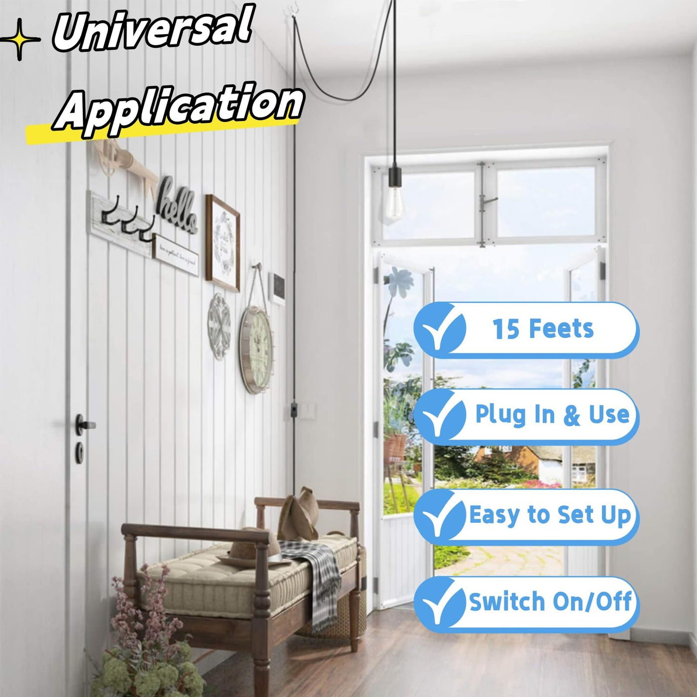 Wisbeam Black Plug-In Pendant Light Kit With 15Ft Cord & On/Off Switch, 1-Pack