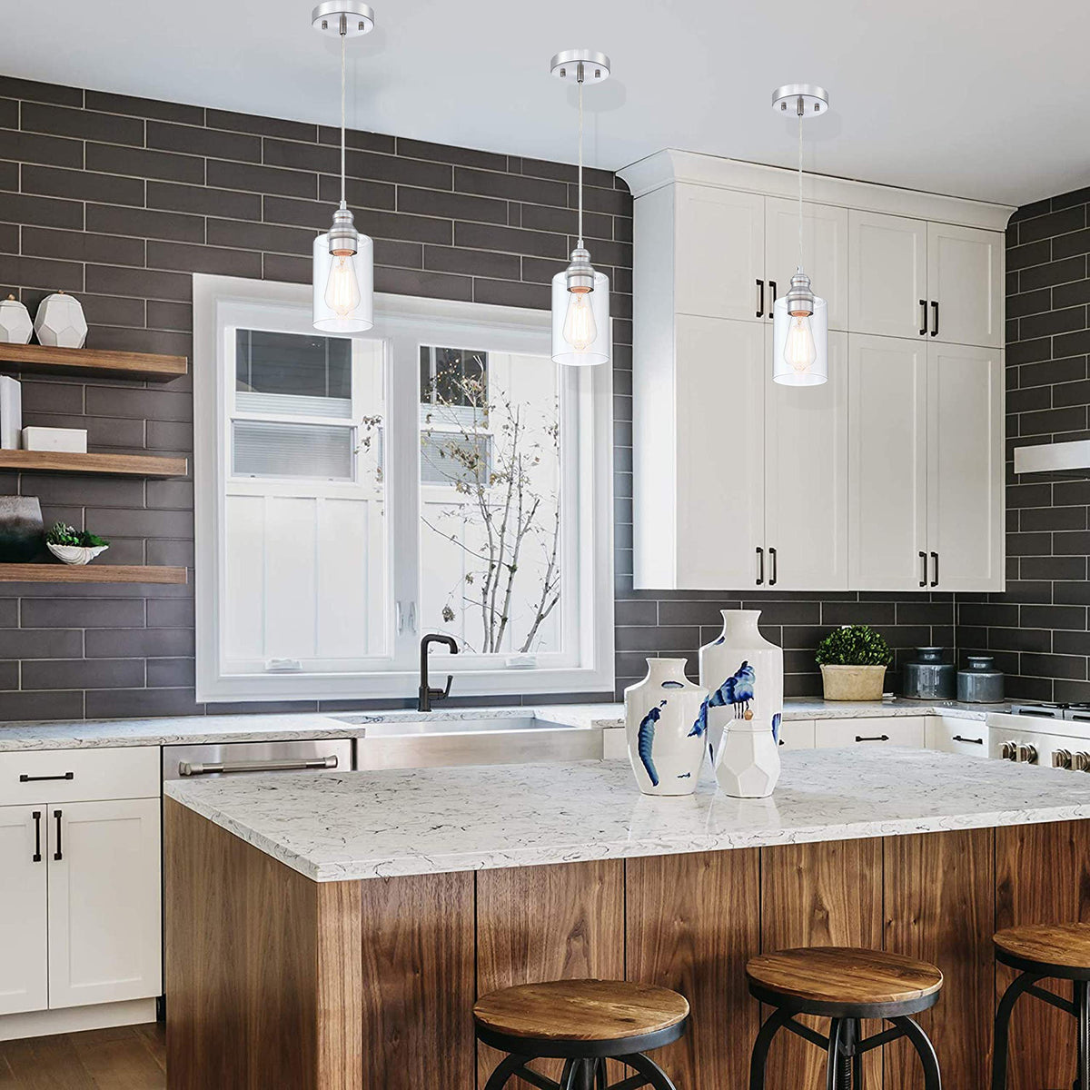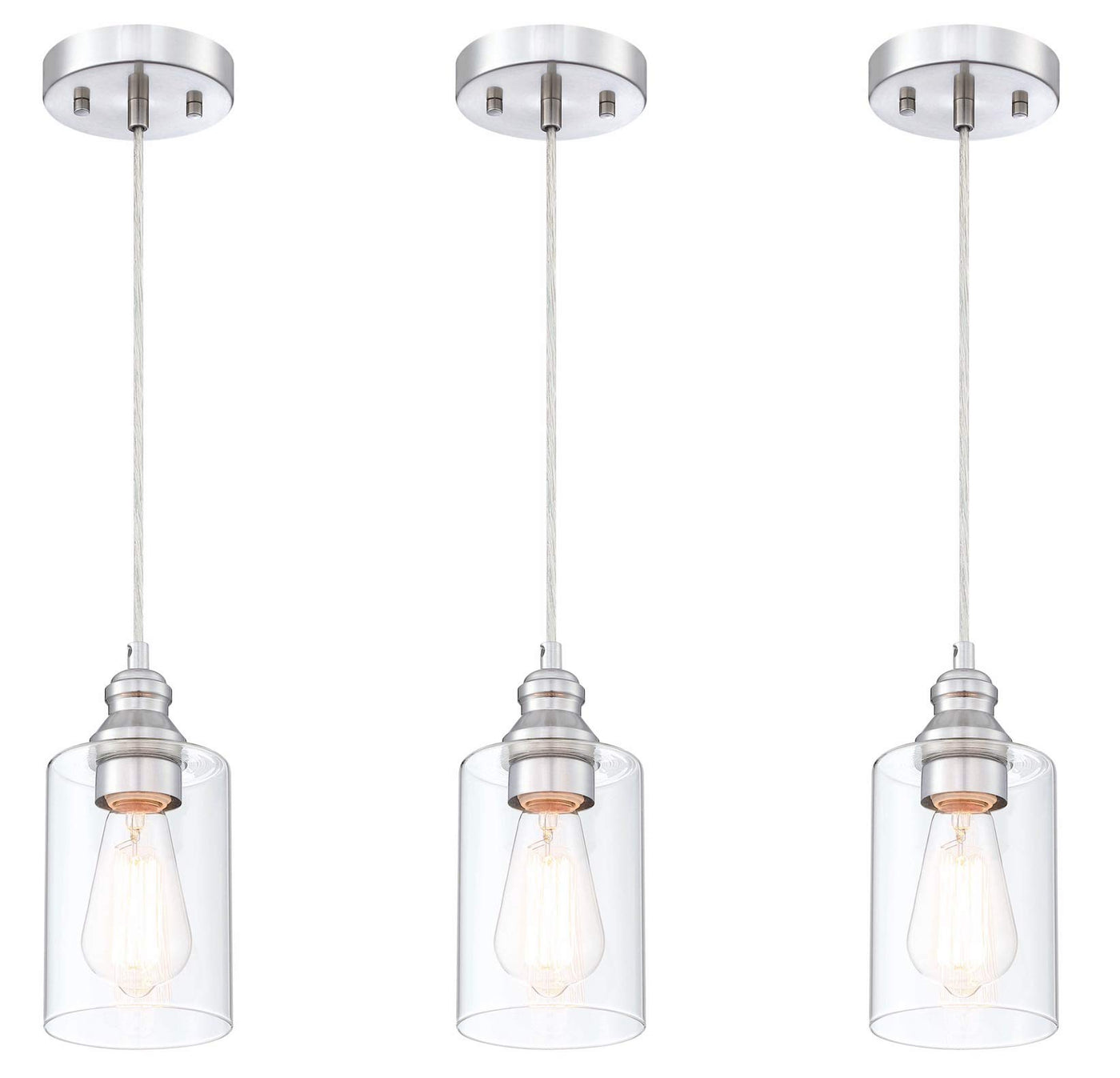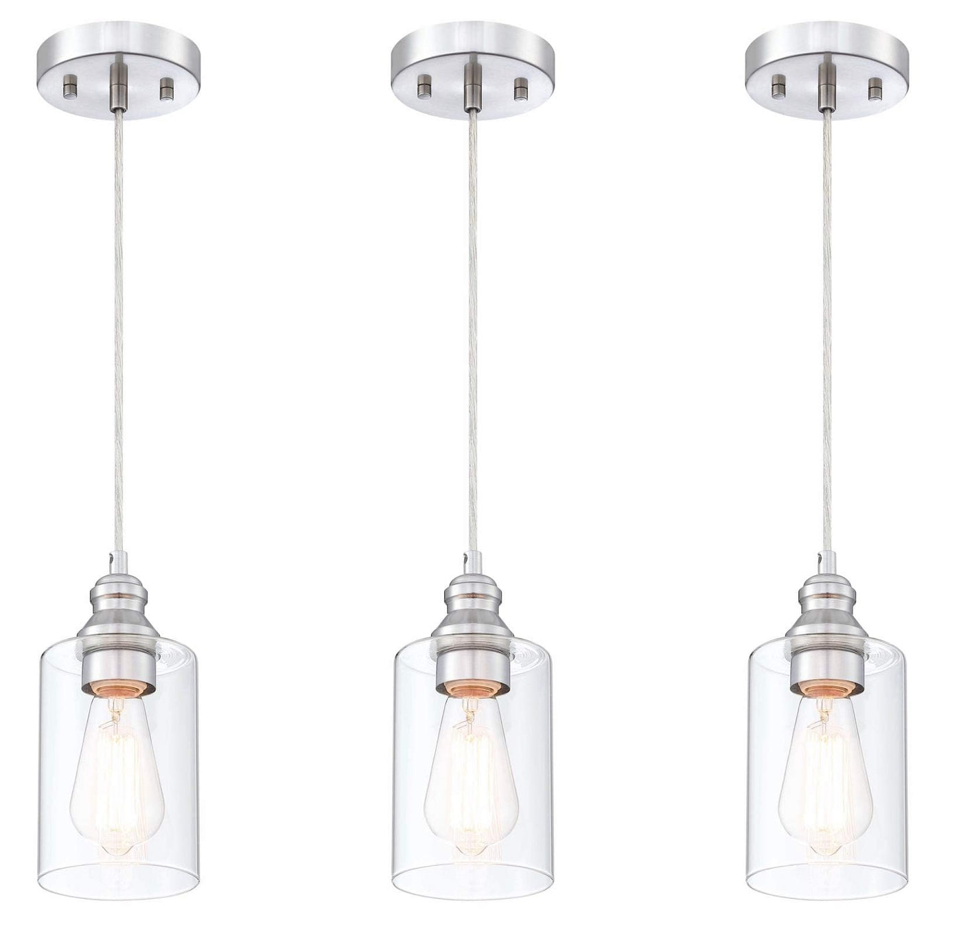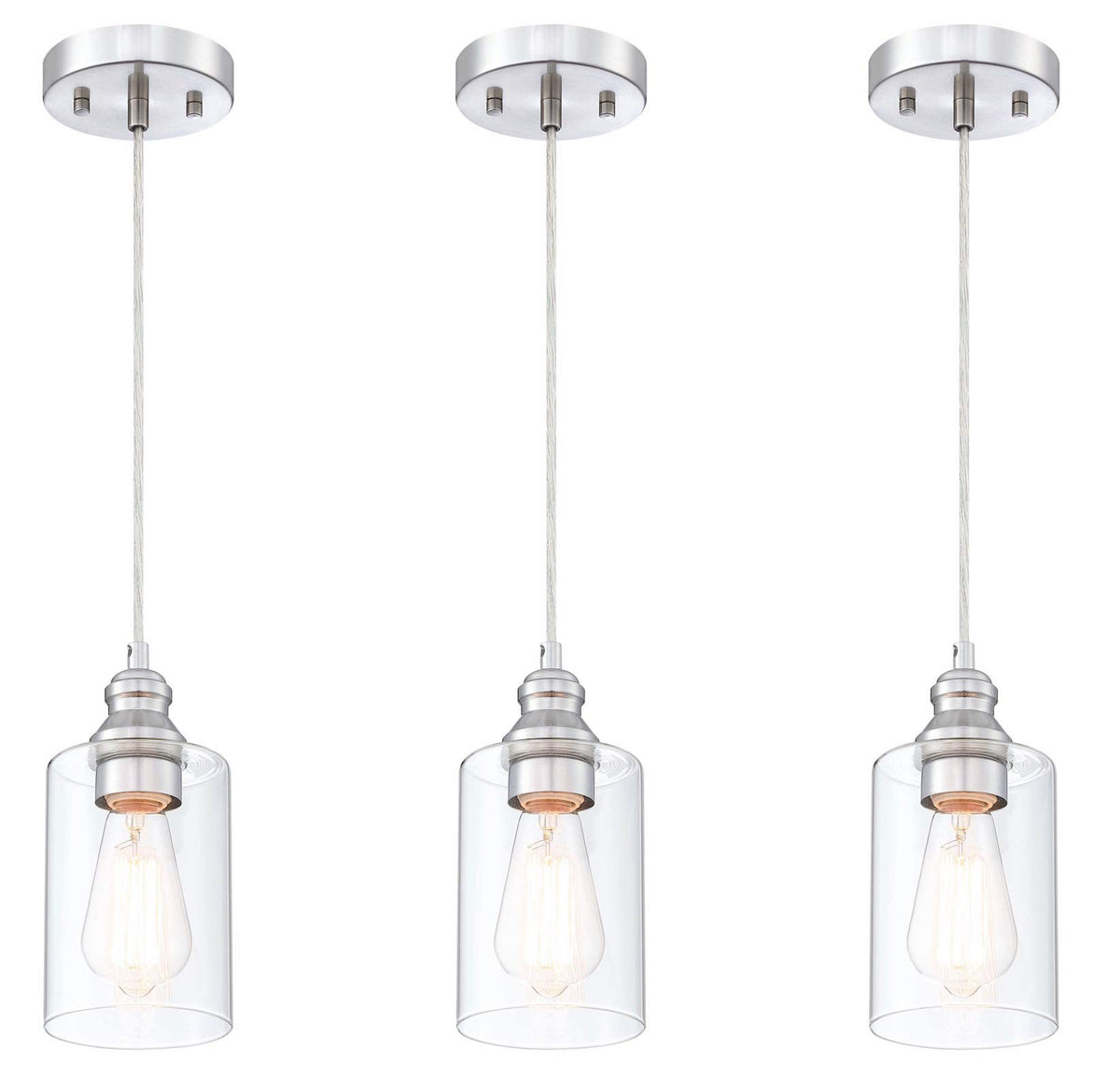 Wisbeam Nickel Pendant Lighting Fixture, E26 Ceiling Lights, 3-Pack, Etl Rated, Bulbs Not Included