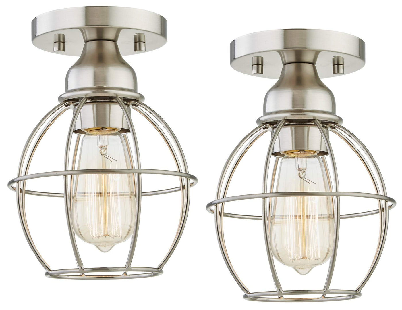 WISBEAM Semi Flush Mount Ceiling Light, Brushed Nickel, 2 Packs, E26 Medium Base, Metal Housing, Model WS-CL018